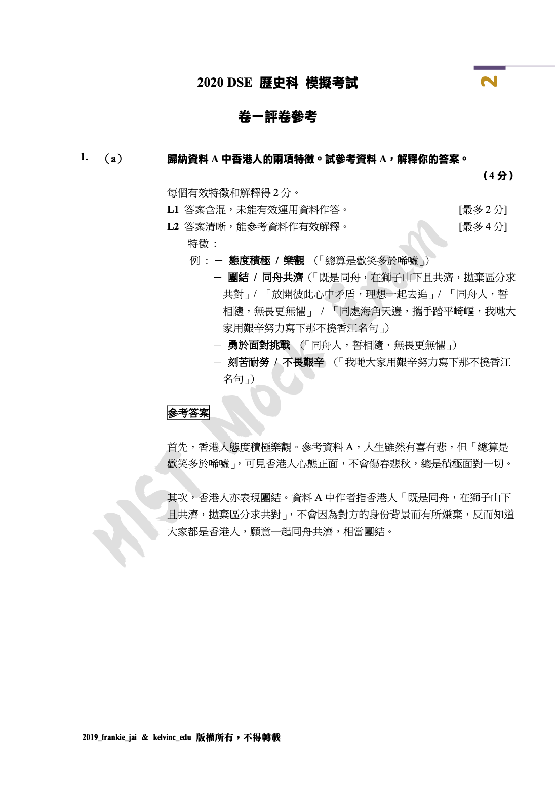 模擬試卷的兩位作者 — Frankie 與 Kelvin 均在 2019 年 DSE 歷史科奪得 5** 分數。