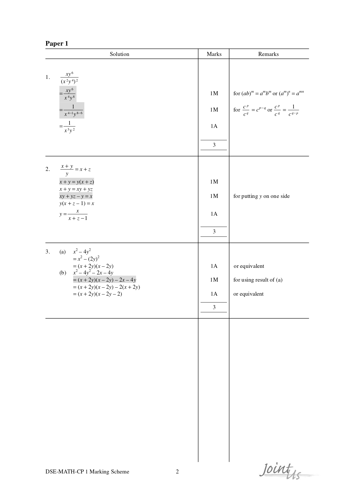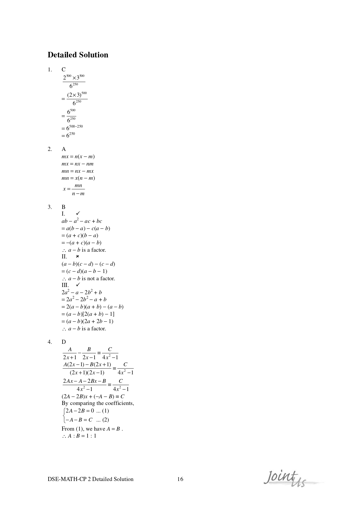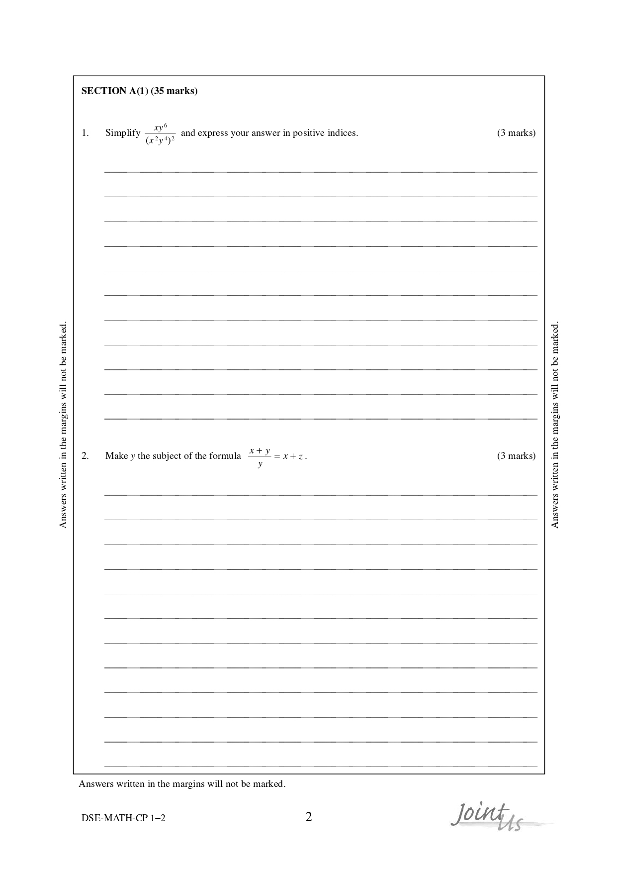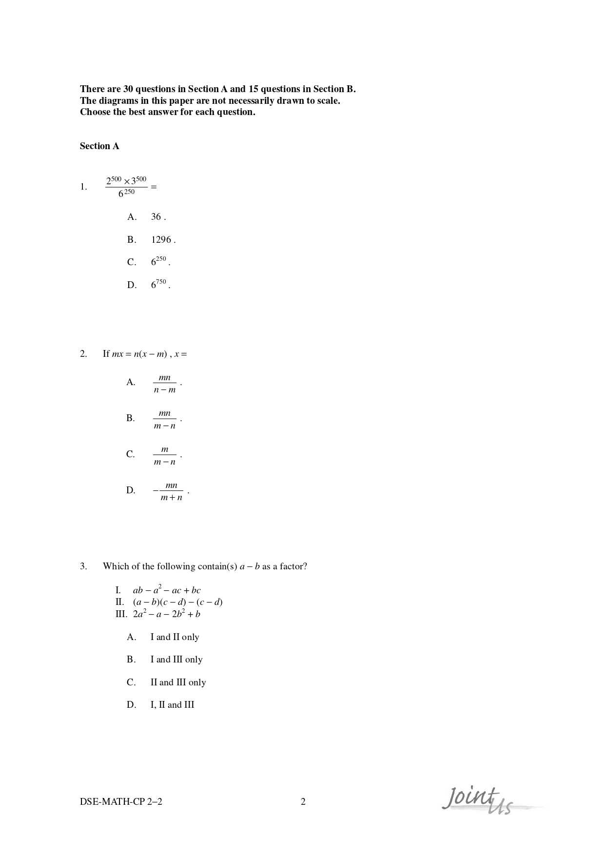 – Joint-Us HKDSE Past Mock Exam Paper - Maths (Compulsory Part) 2020 (英文版)