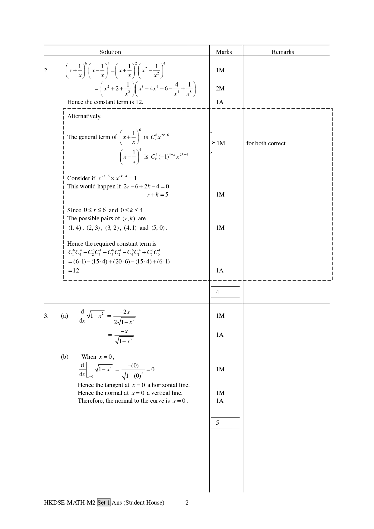 ◊ 評分參考中列明每個計算步驟,並提供不同的計算方法,助同學掌握解題要訣