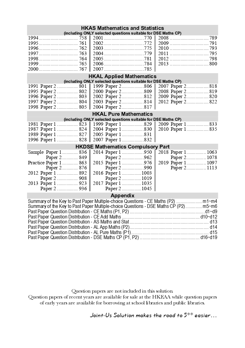 Question papers are NOT included in this solution. Question papers of recent years are available for sale at the HKEAA while question papers of early years are available for borrowing at school libraries and public libraries.