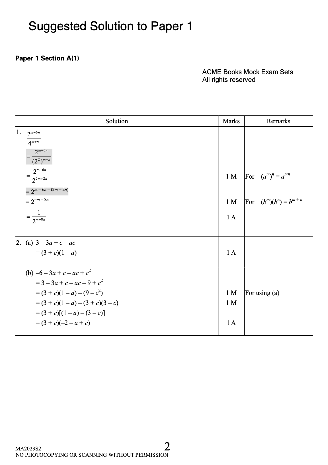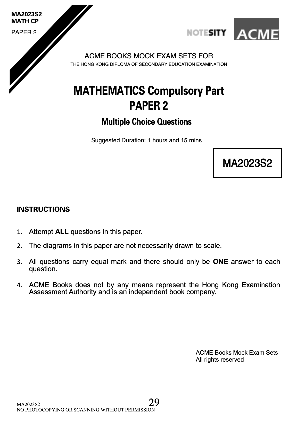 ACME Books DSE Maths Mock Paper Set 收錄一整套 Paper 1、2 題目、Suggested Solution 及 Paper 2 (MC) 詳解,助你全面應對DSE考試!