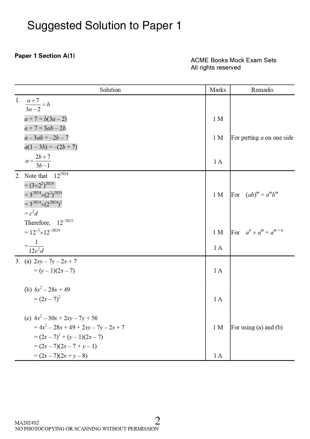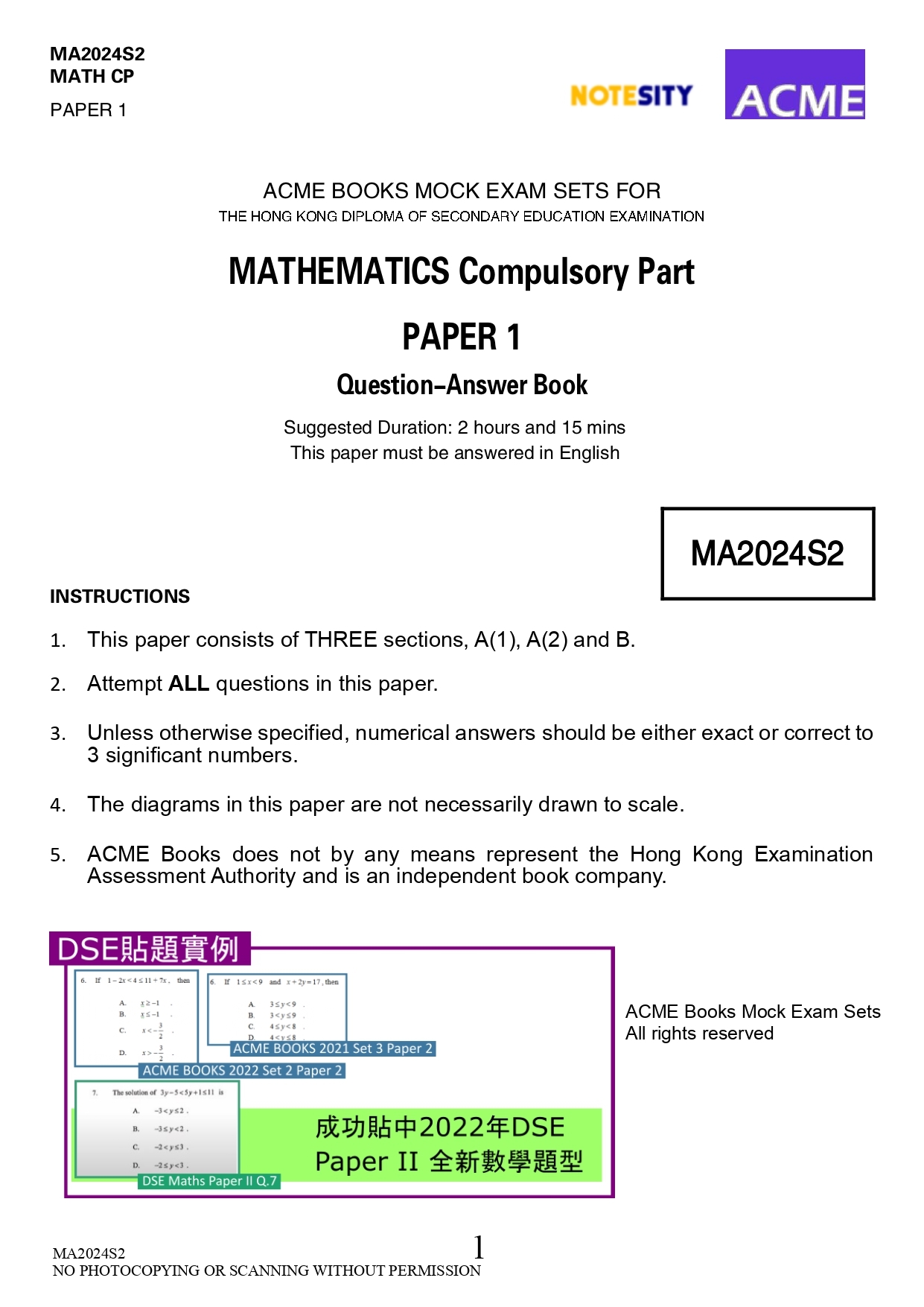 ACME Books DSE Maths Mock Paper Set 收錄一整套 Paper 1、2 題目、Suggested Solution 及 Paper 2 (MC) 詳解,助你全面應對DSE考試!