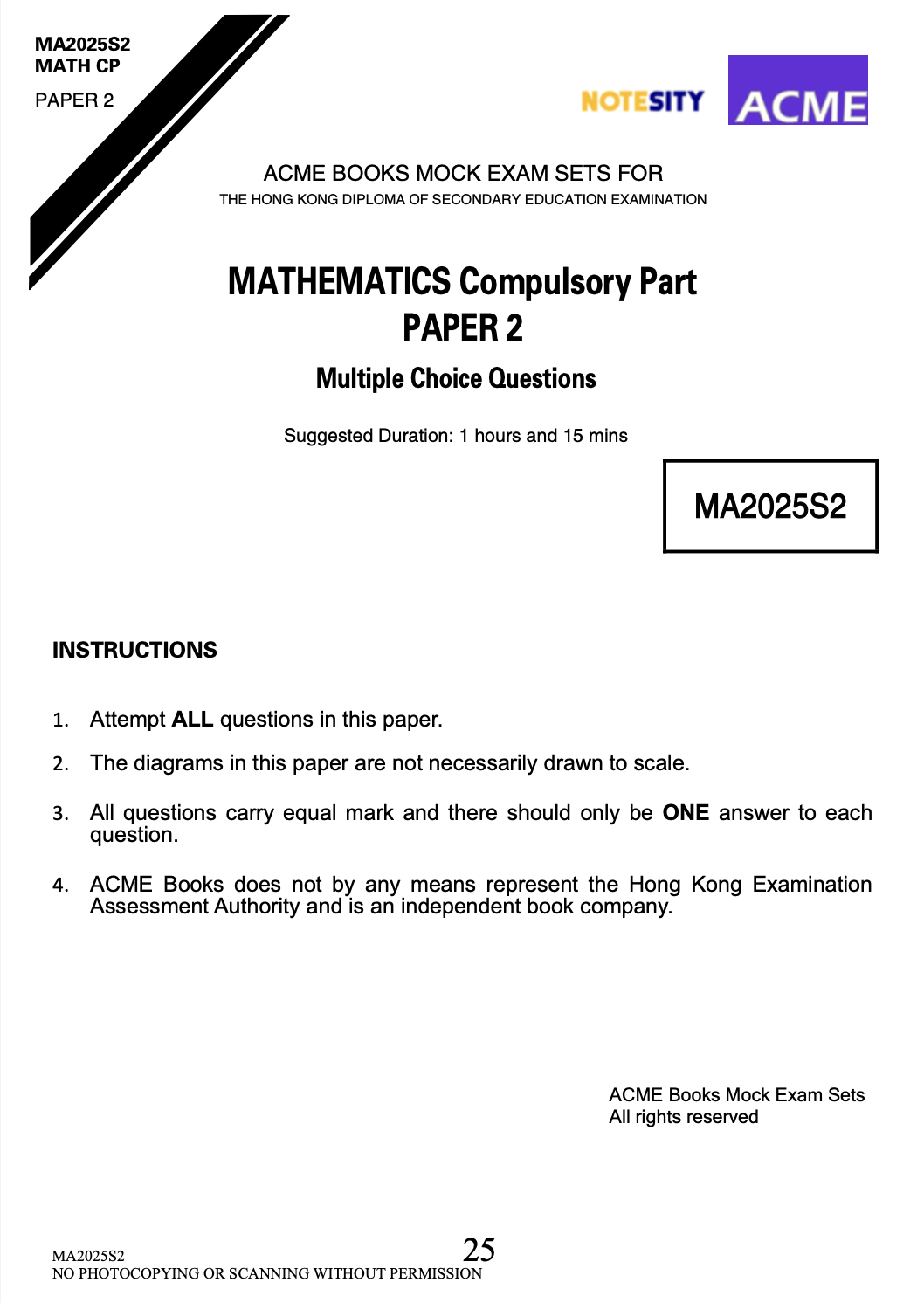 2025 DSE Maths Mock Set 2 by ACME Books