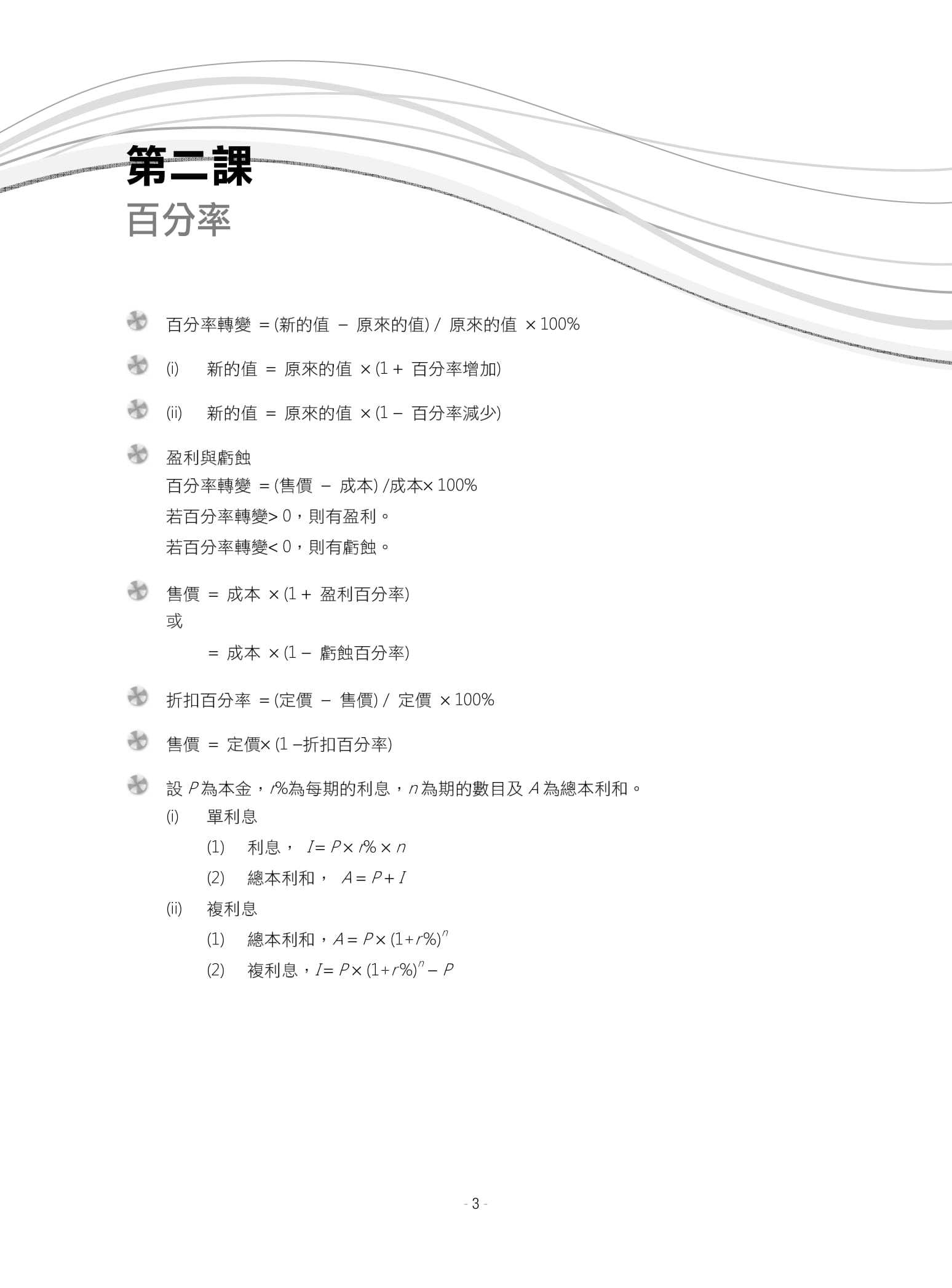 • 題解詳細列明計算步驟,讓同學了解不同題型的要點,從而準確精明地運用數式