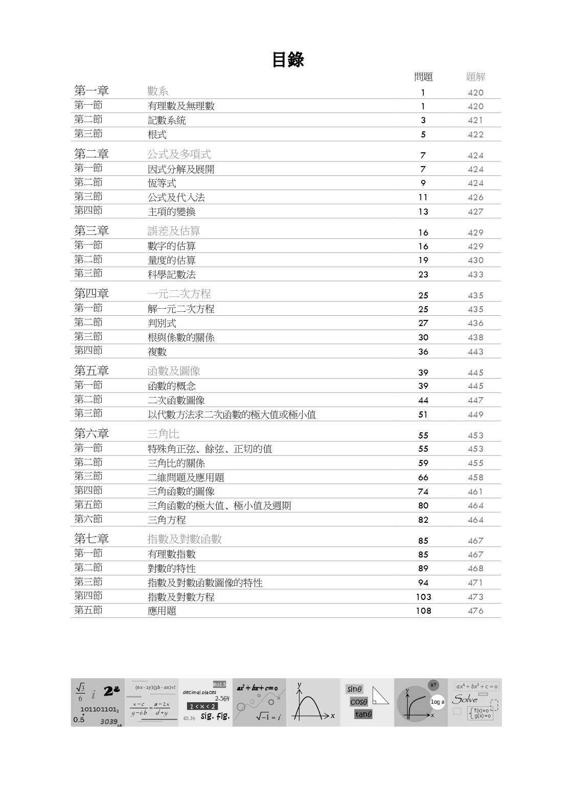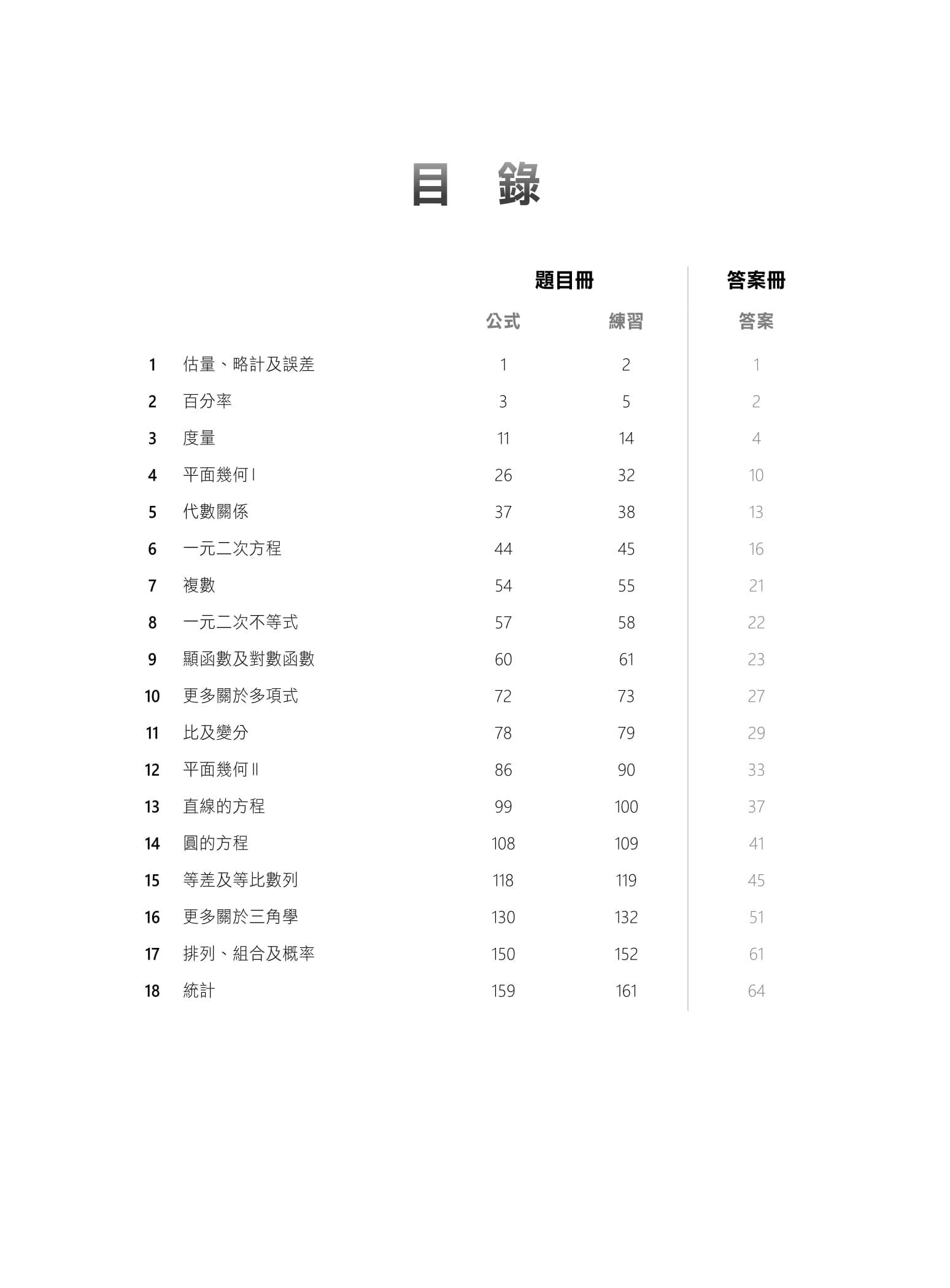 • 有助同學運用所學,提升初高中程度的運算技巧,以掌握數式