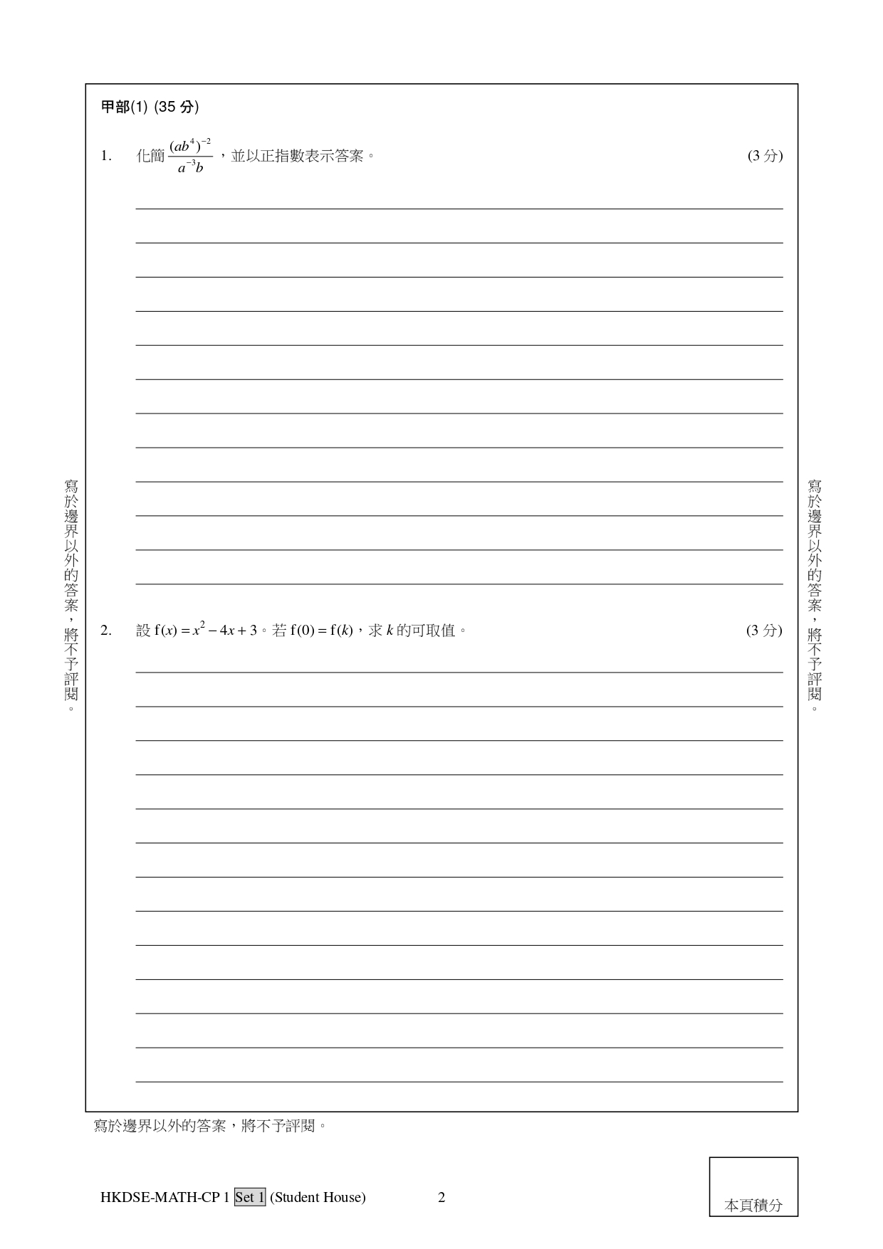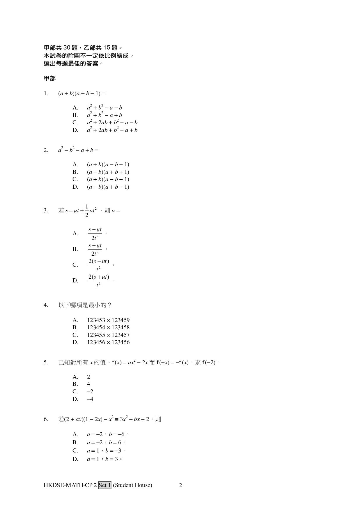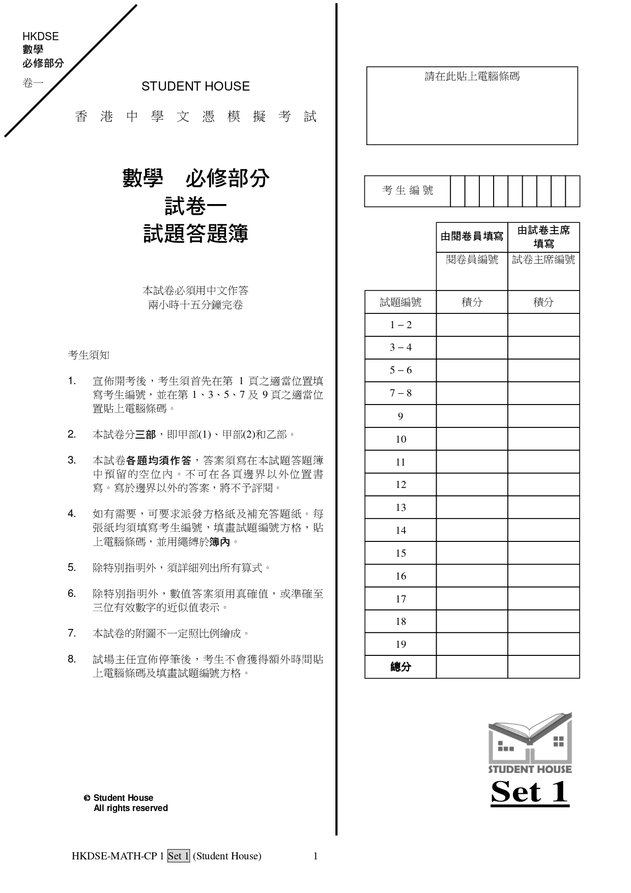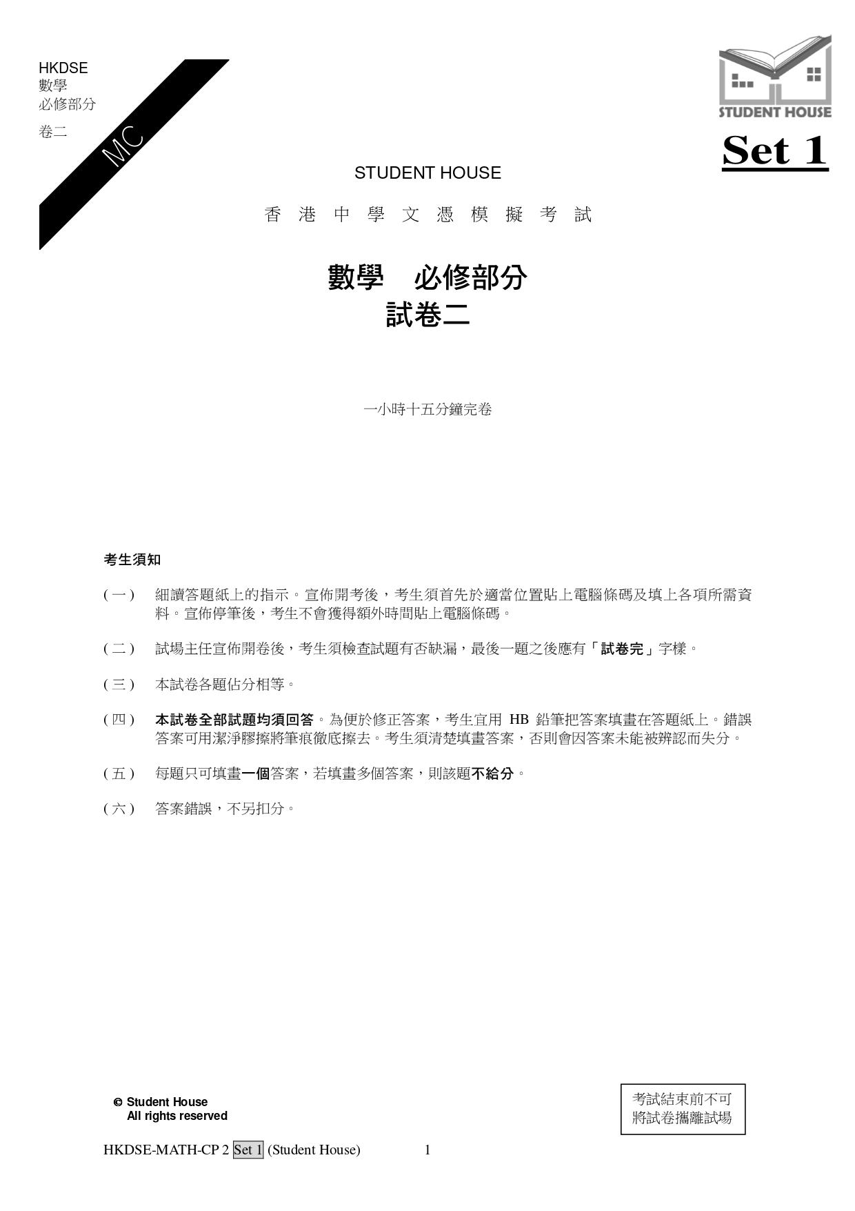 ◊ 特別為應考文憑試數學科必修部分的考生編製