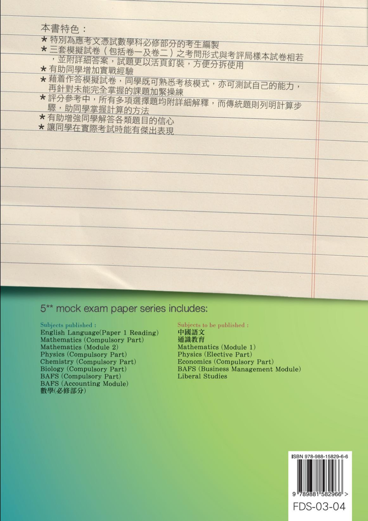 ◊ 三套模擬試卷(包括卷一及卷二)之考問形式與公開試試卷相若,並附詳細答案,試題更以活頁釘裝,方便分拆使用