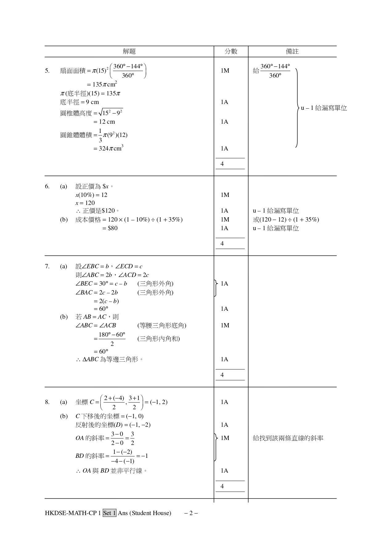 ◊ 評分參考中,所有多項選擇題均附詳細解釋,而傳統題則列明計算步驟,助同學掌握計算的方法