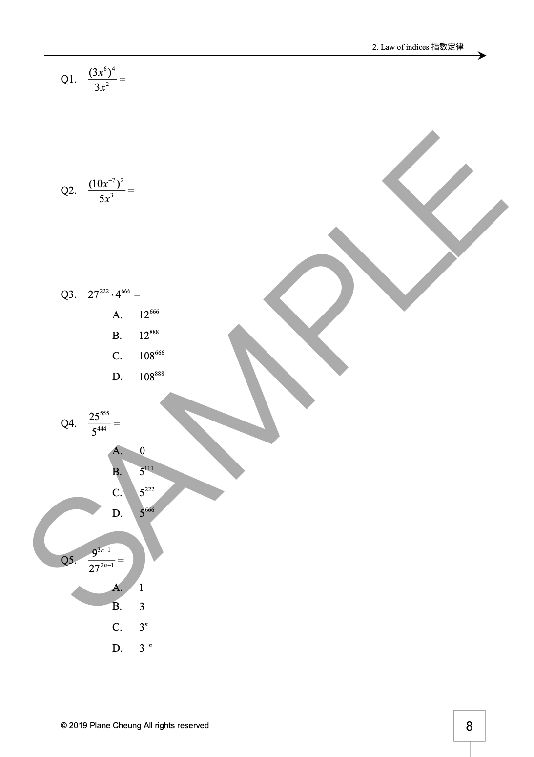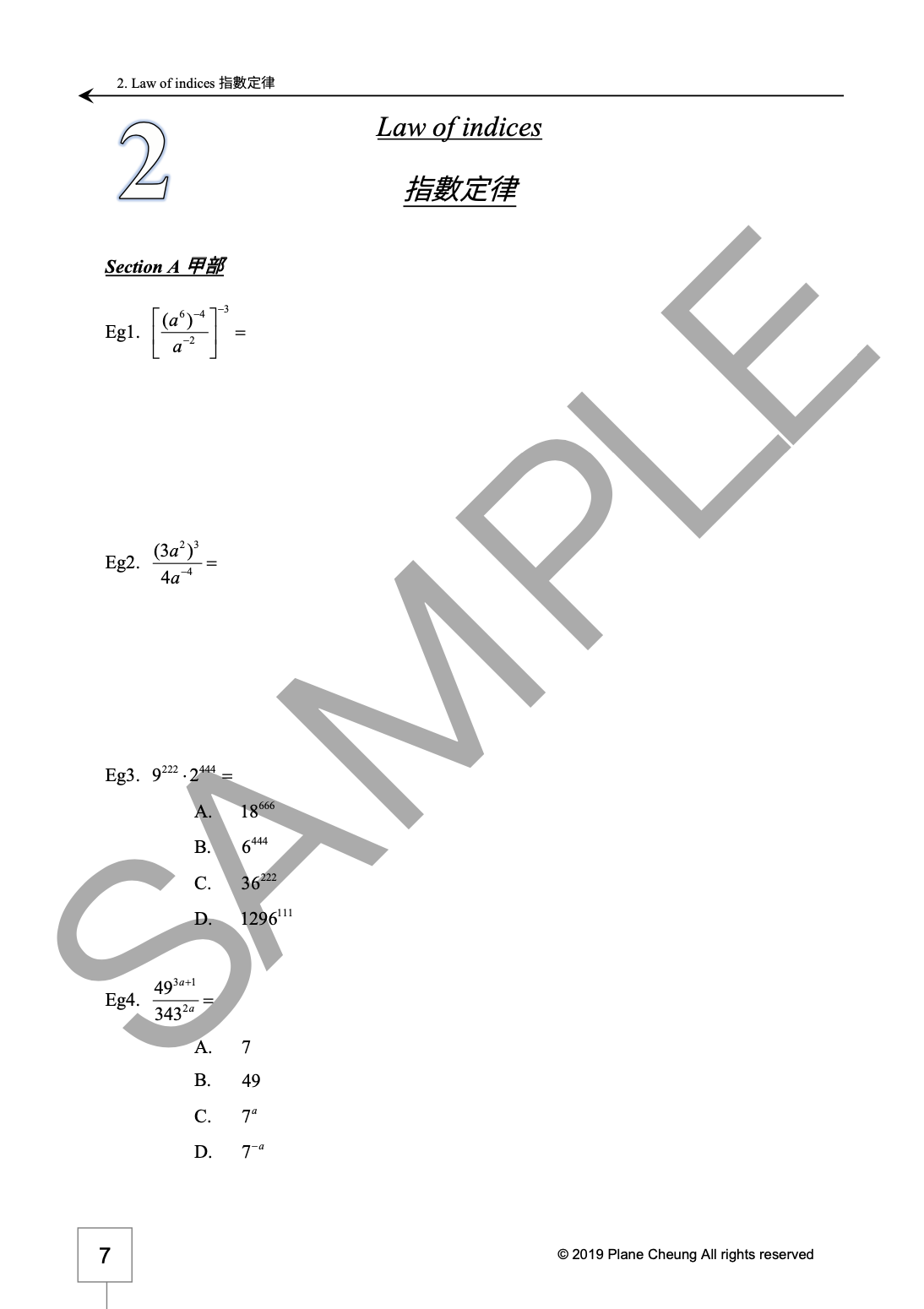 2. 指數定律 (Law of indices)