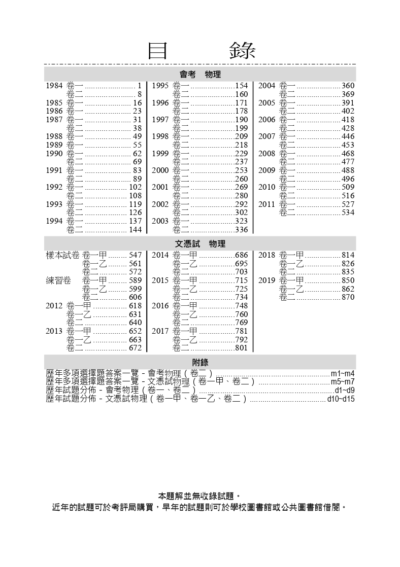 會考物理(卷一 1984-2011;卷二 1984, 87, 90-2011)