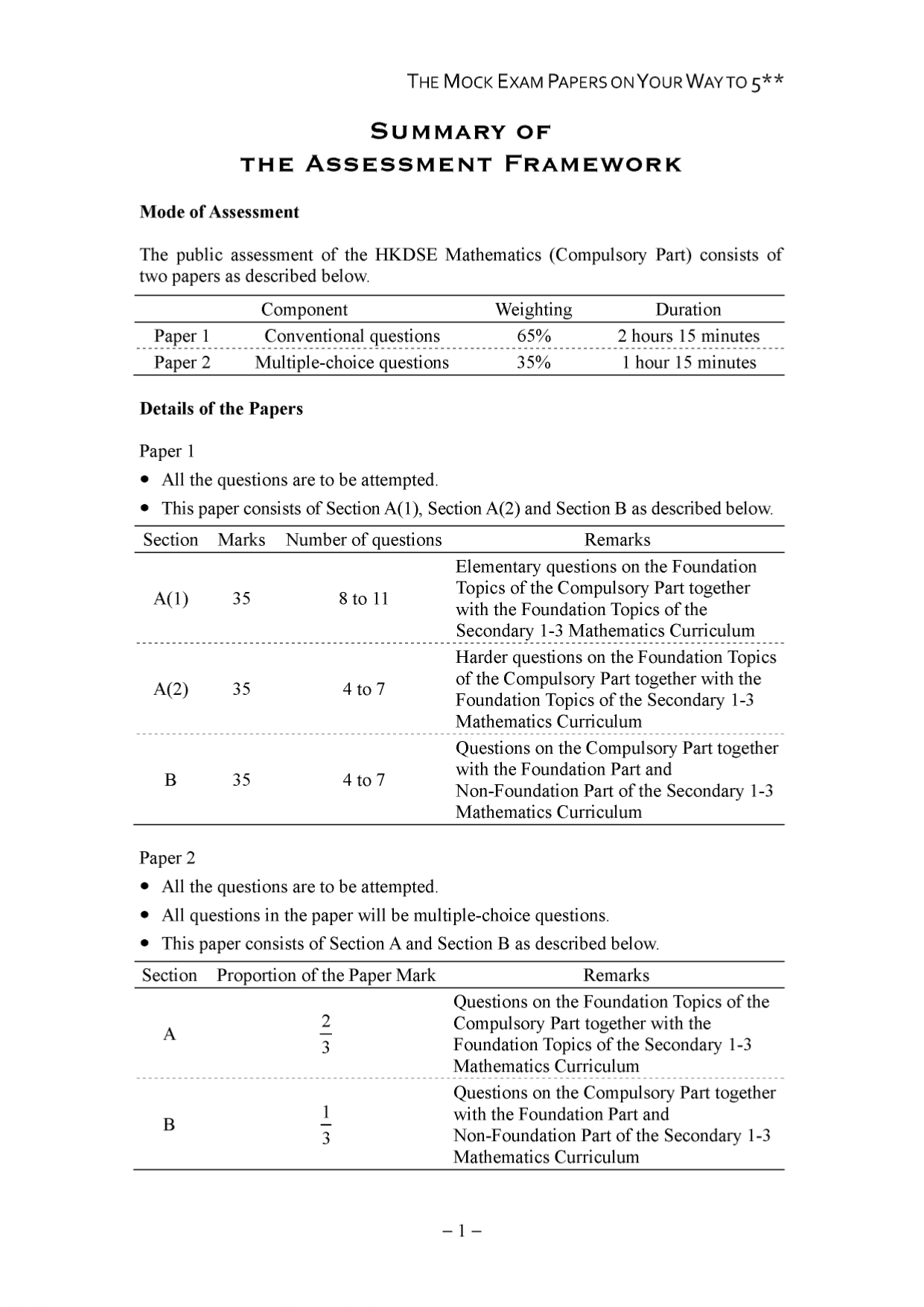 • set in accordance with past exam papers, from level of difficulty, style of the problems and distribution of the topics to length of the questions, wording in sentences and formatting of the pages