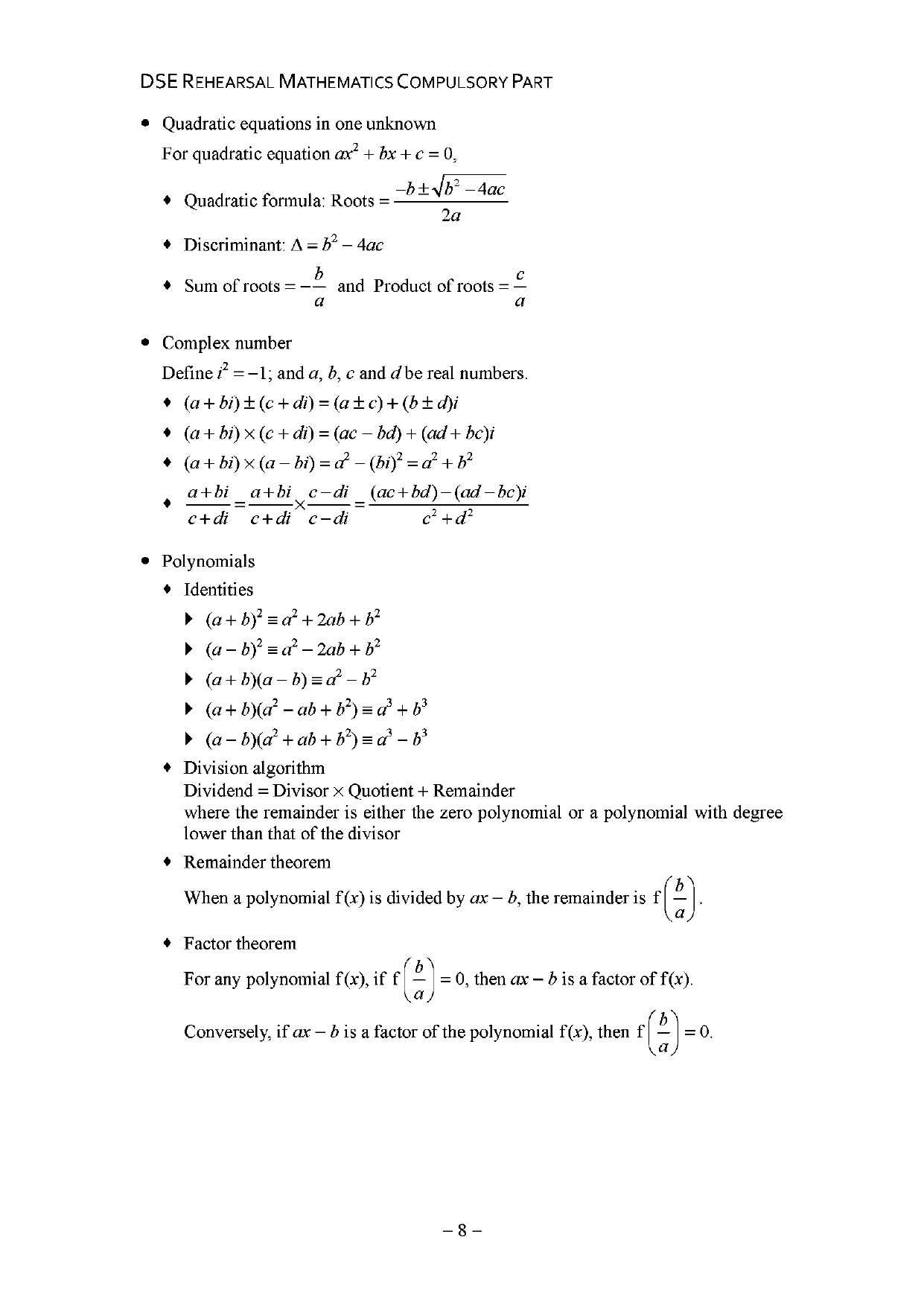 DSE Rehearsal Mathematics Compulsory Part 設有中、英文版本: