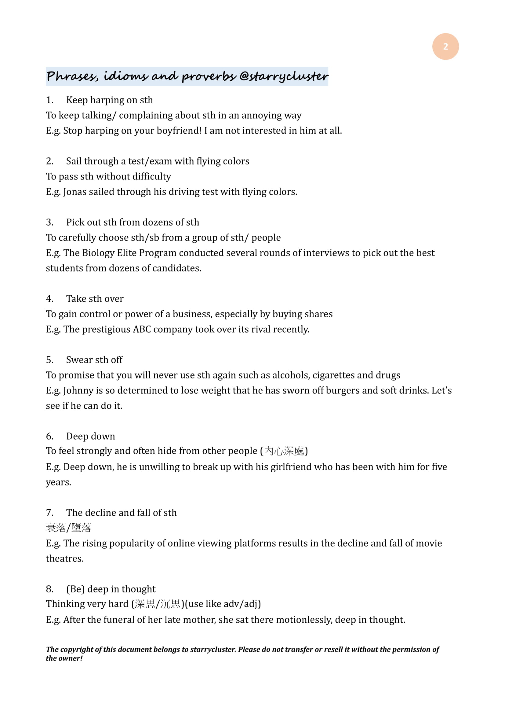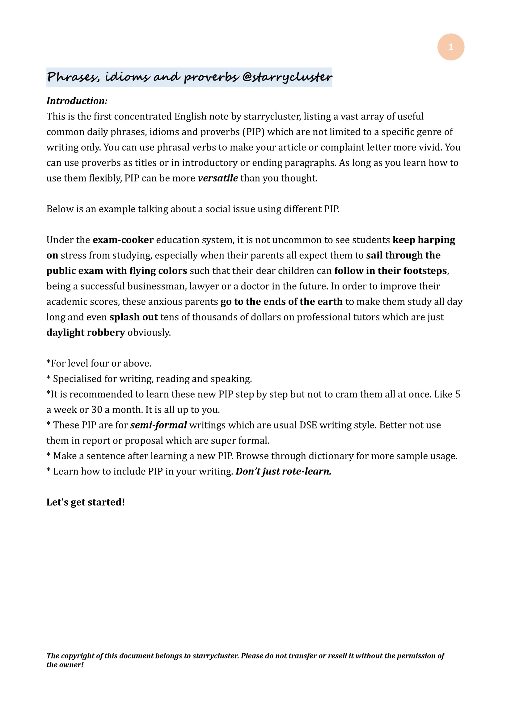 小編通宵達旦左幾日filter左F5一年係補習同私下自己學過嘅phrases, idioms and proverbs 簡稱PIP (我作嘅名😂) 最後打左嚟份含有199個PIP嘅notes🌟