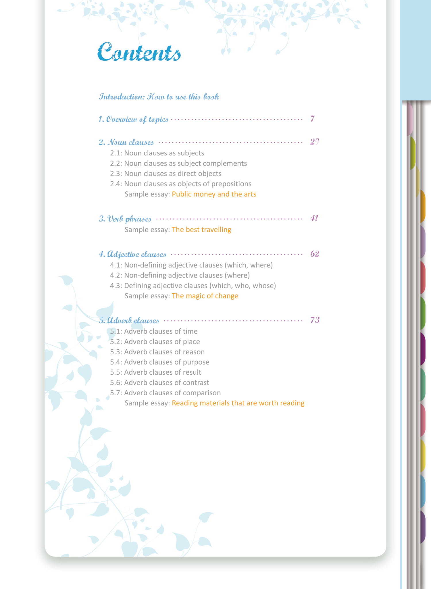 - Sample articles demonstrating the usage of grammar items in an extended prose