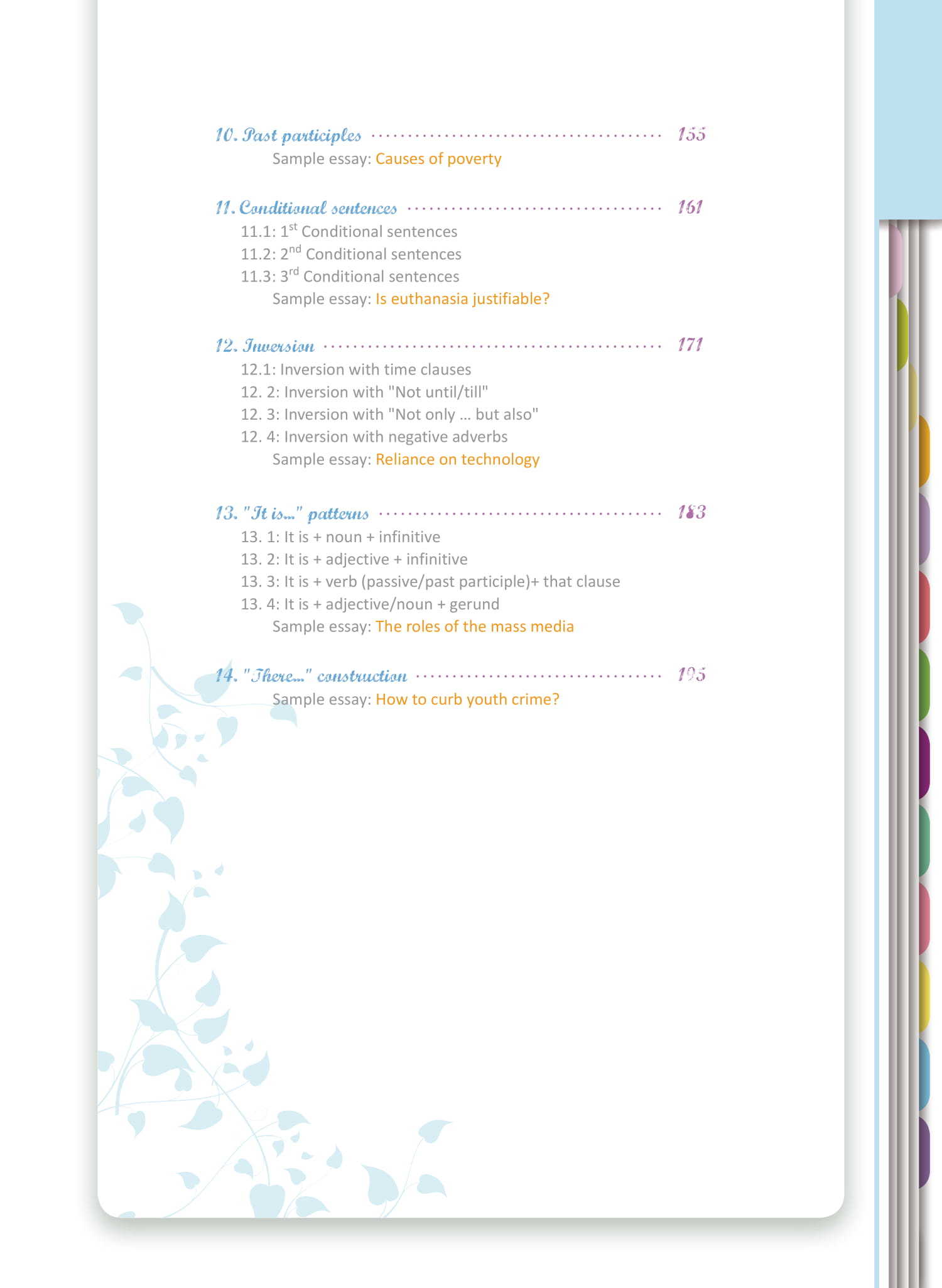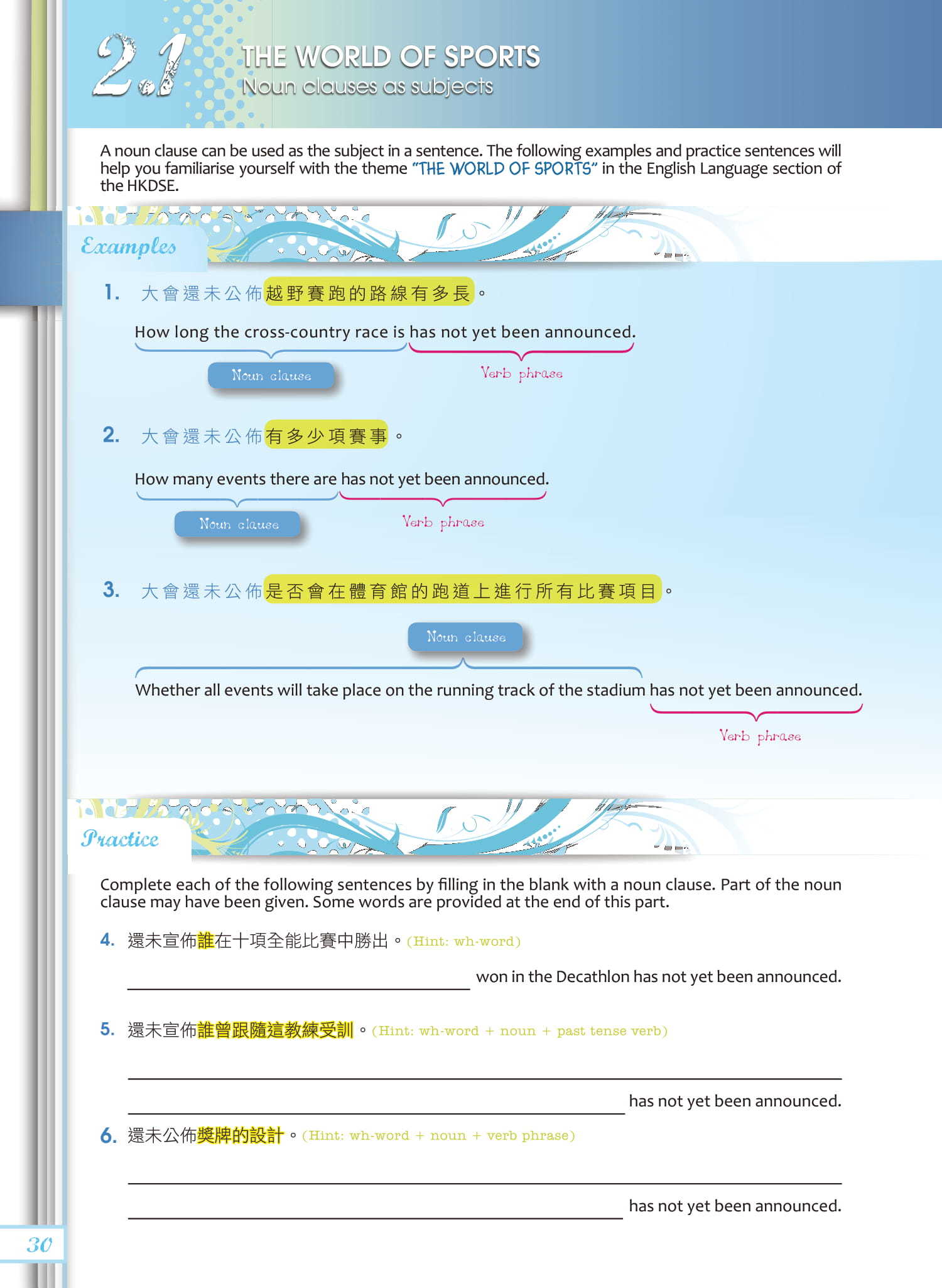 - Examples illustrating a specific grammar structure, followed by practice exercises for consolidation