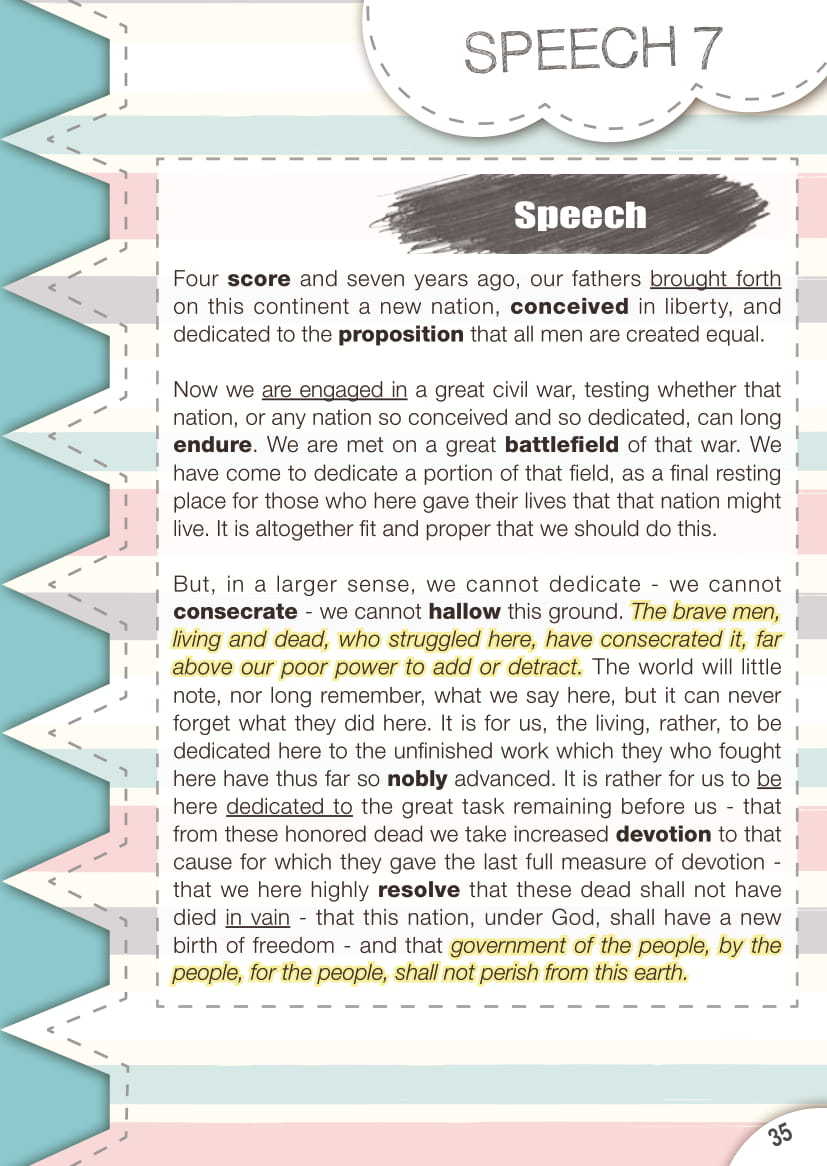 • Learn authentic English through 20 timeless speeches/speech excerpts by distinguished figures in history - John F.Kennedy, Abraham Lincoln, Winston Churchill, Nelson Mandela, Franklin D. Roosevelt, Martin Luther King, etc…