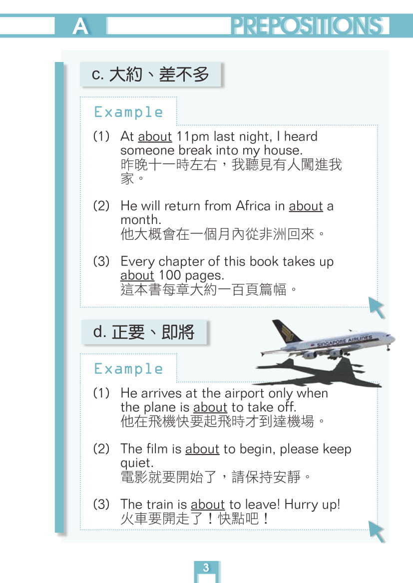 - 大量實例舉隅,點出各介詞在用法上的細微分別