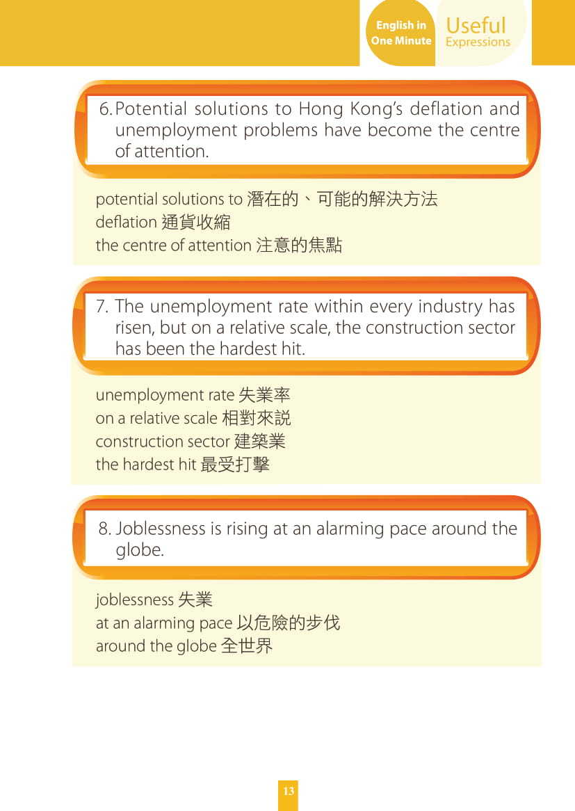 - Useful expressions with Chinese translations to enrich students' vocabulary bank for the topics covered in the HKDSE English Language Curriculum