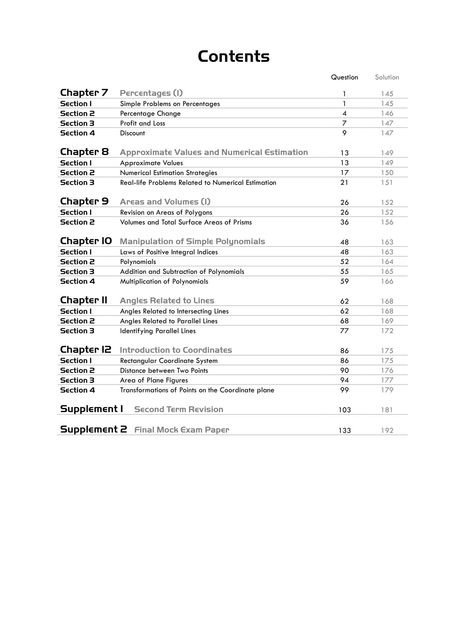 With full coverage of the new junior secondary Mathematics curriculum, this series serves as a useful tool, giving students a deep understanding of the subject and helping them to achieve excellent results in tests and examinations.