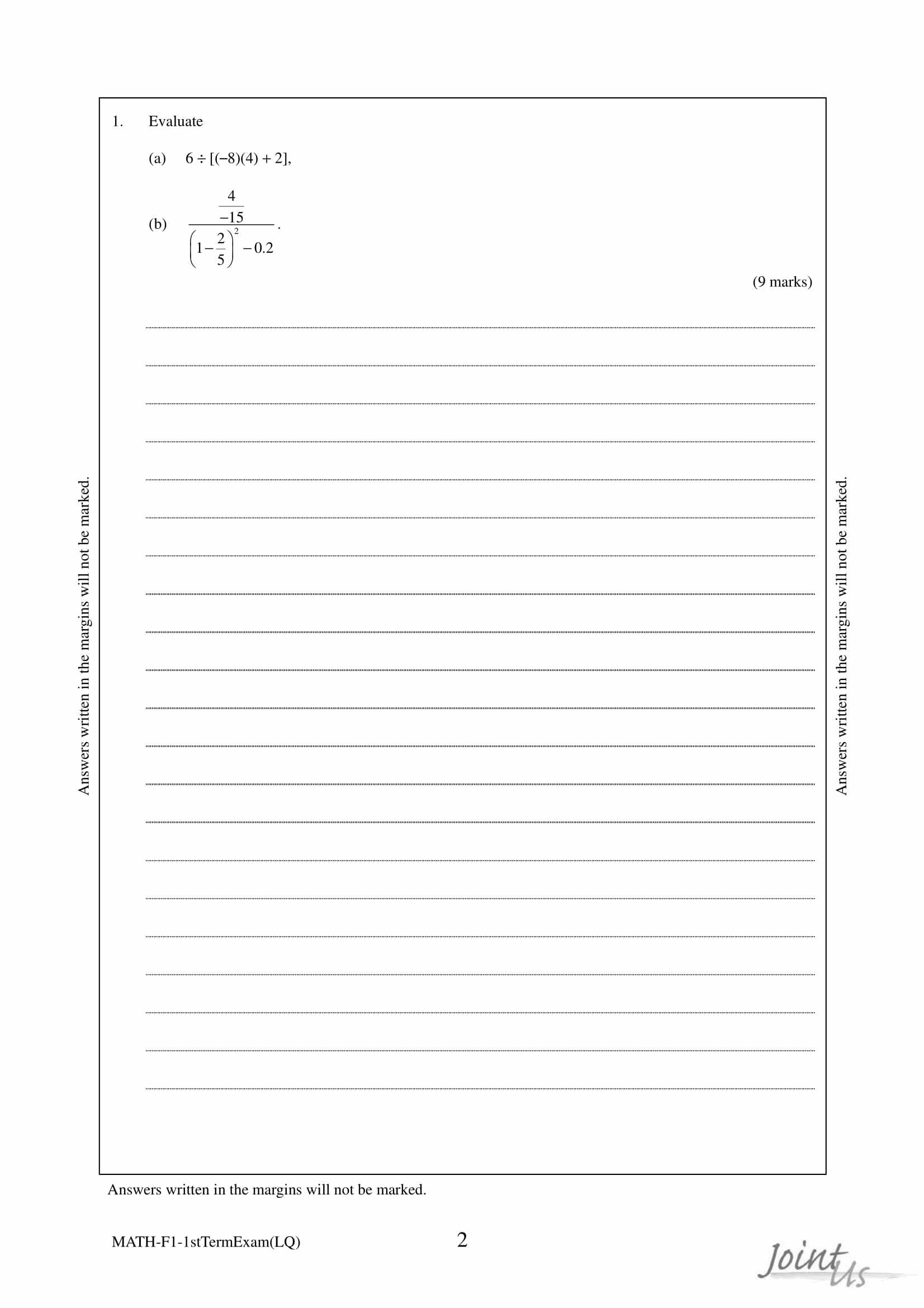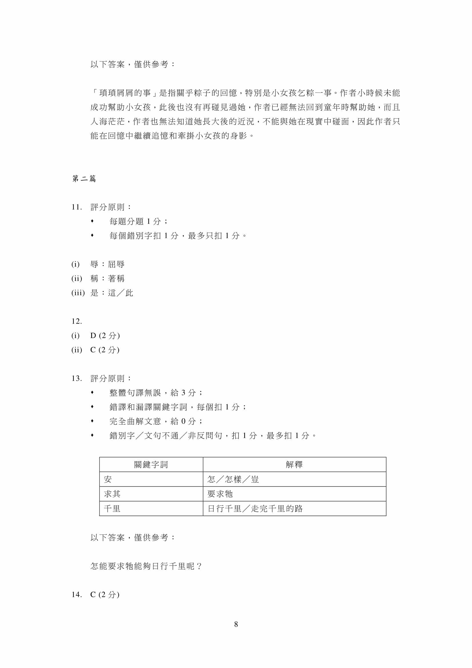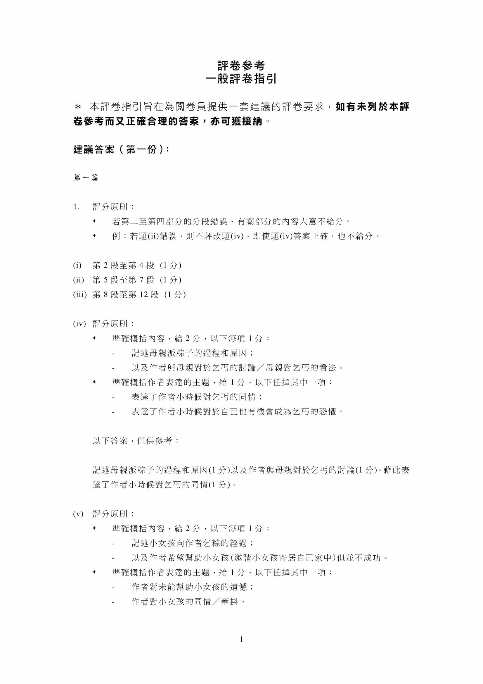 - 評分準則編寫仔細,附有參考答案,老師和同學能容易批閱答案,同學亦能藉評分準則研習考試,而非盲目操練。