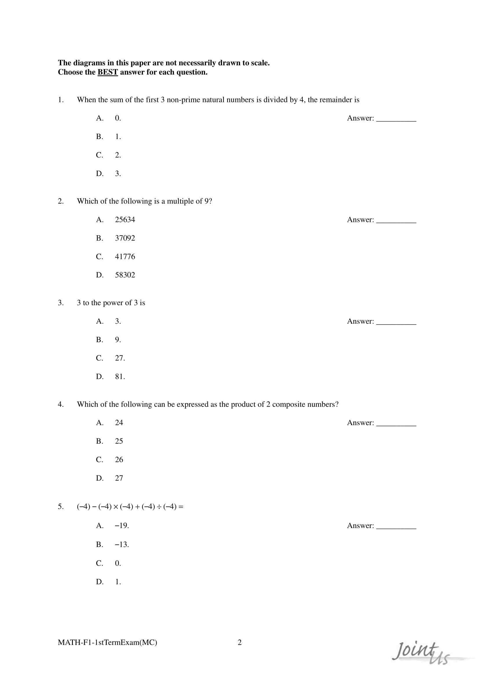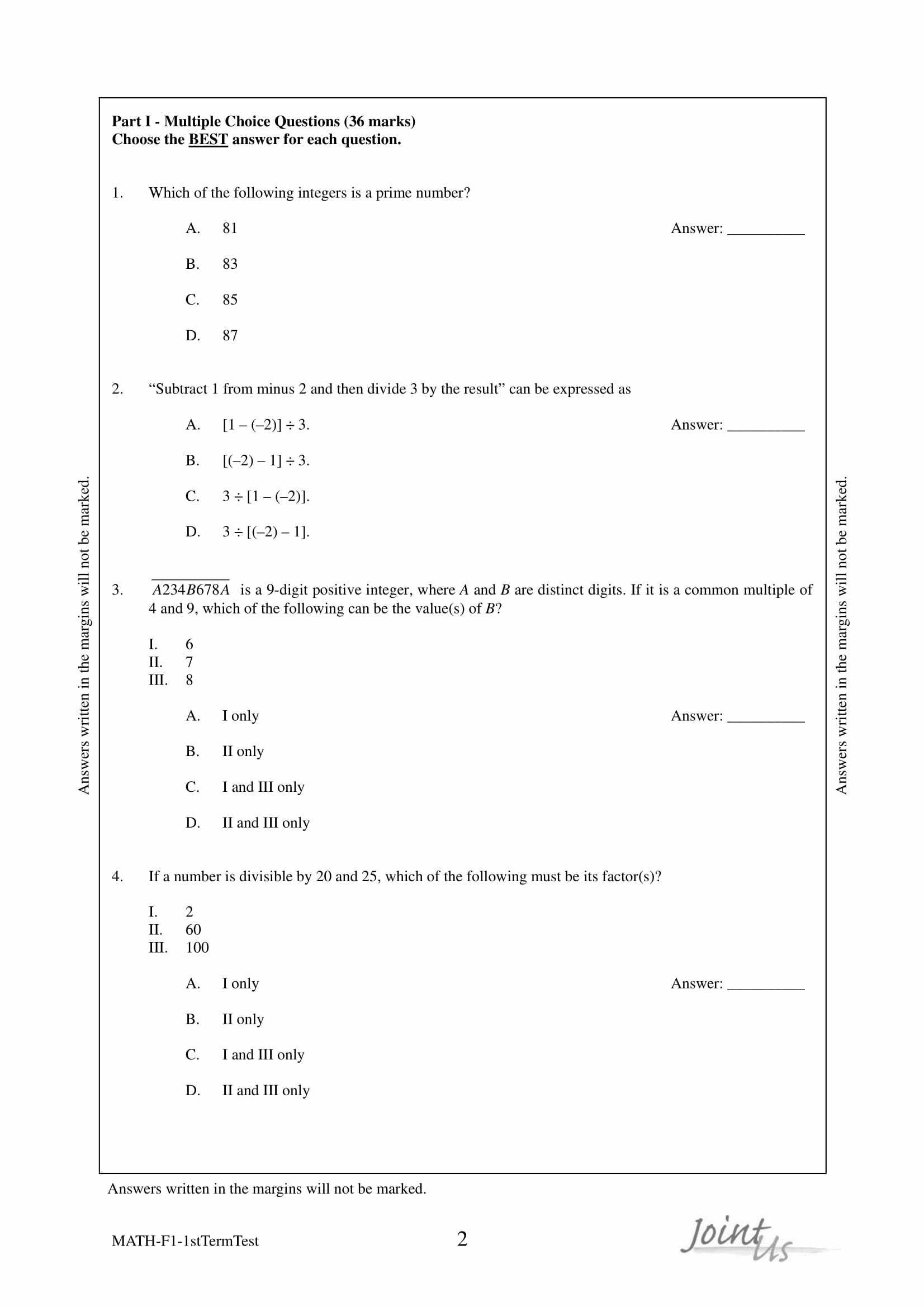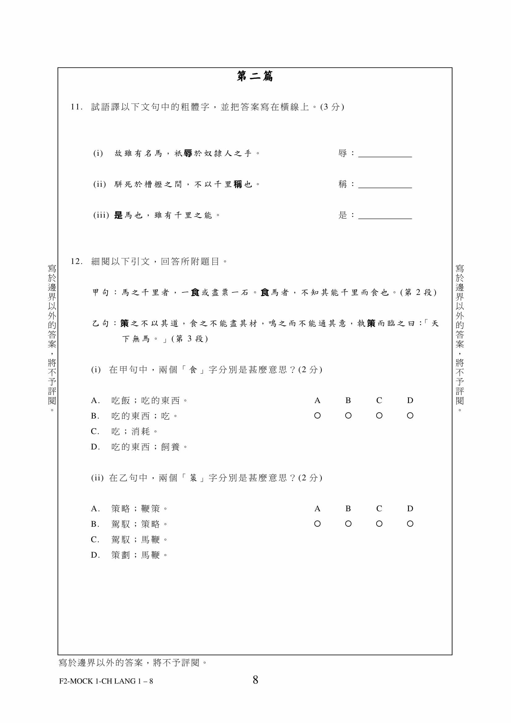 - 評分準則編寫仔細,附有參考答案,老師和同學能容易批閱答案,同學亦能藉評分準則研習考試,而非盲目操練。