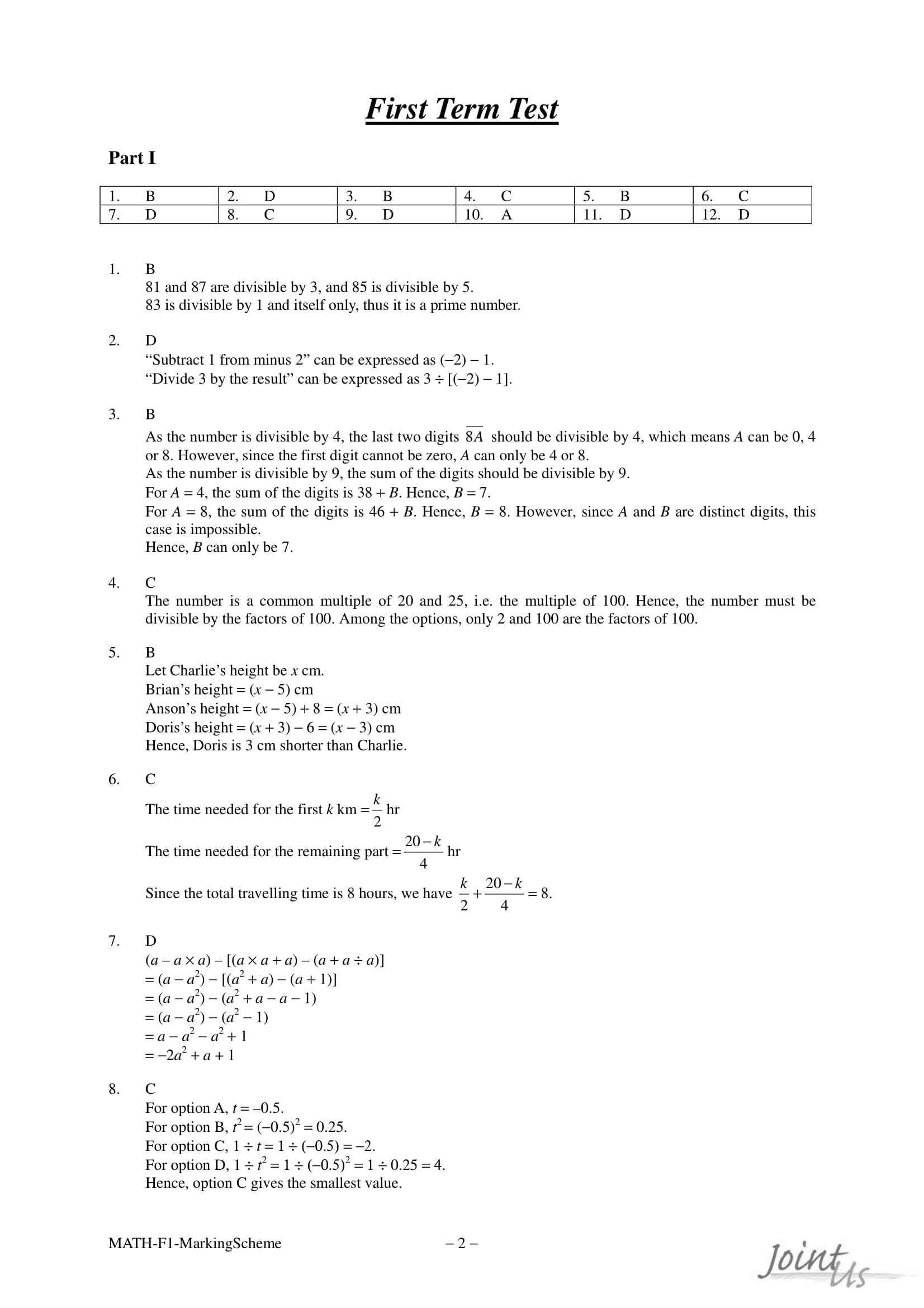 - Full solutions with clear marking criteria