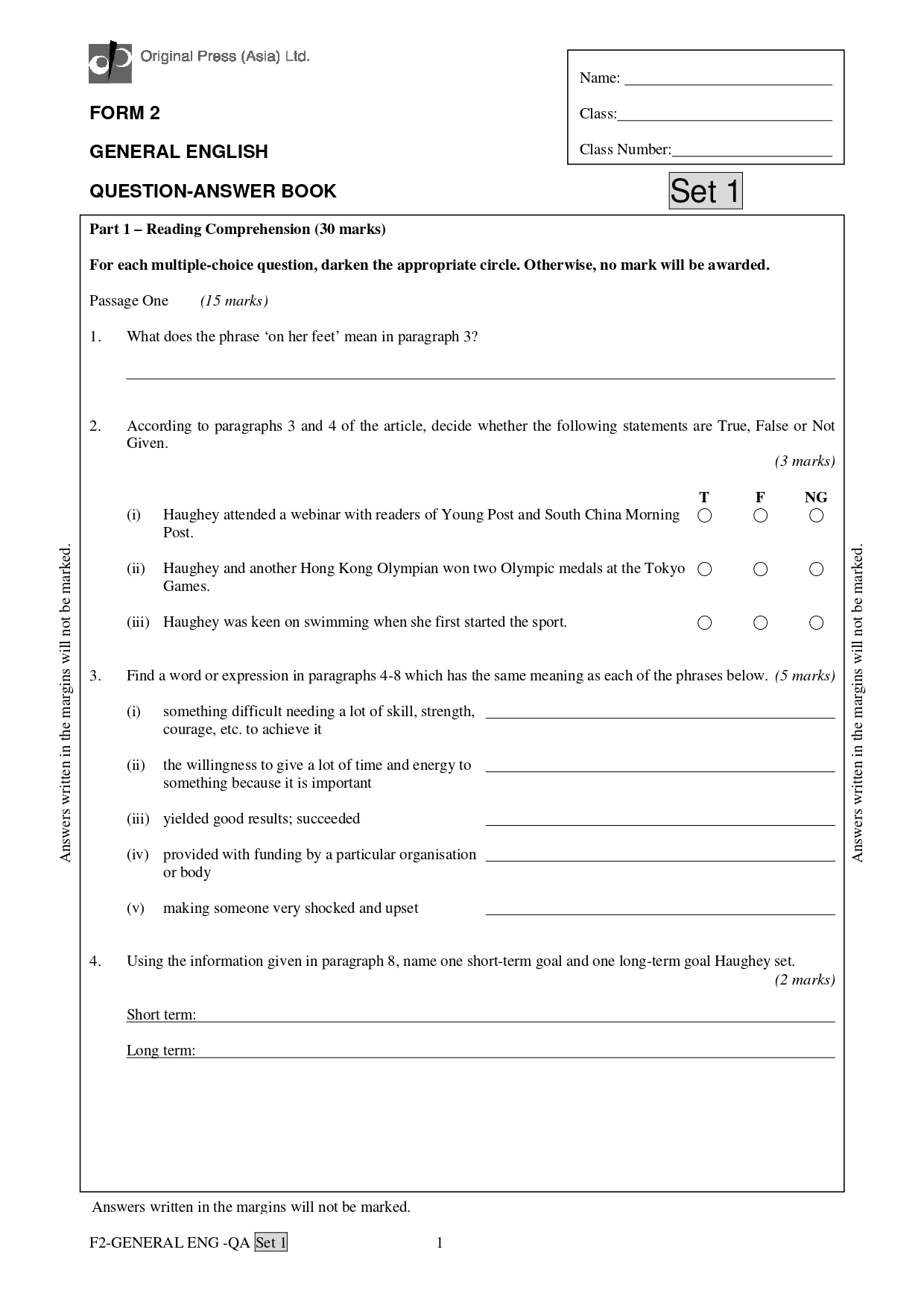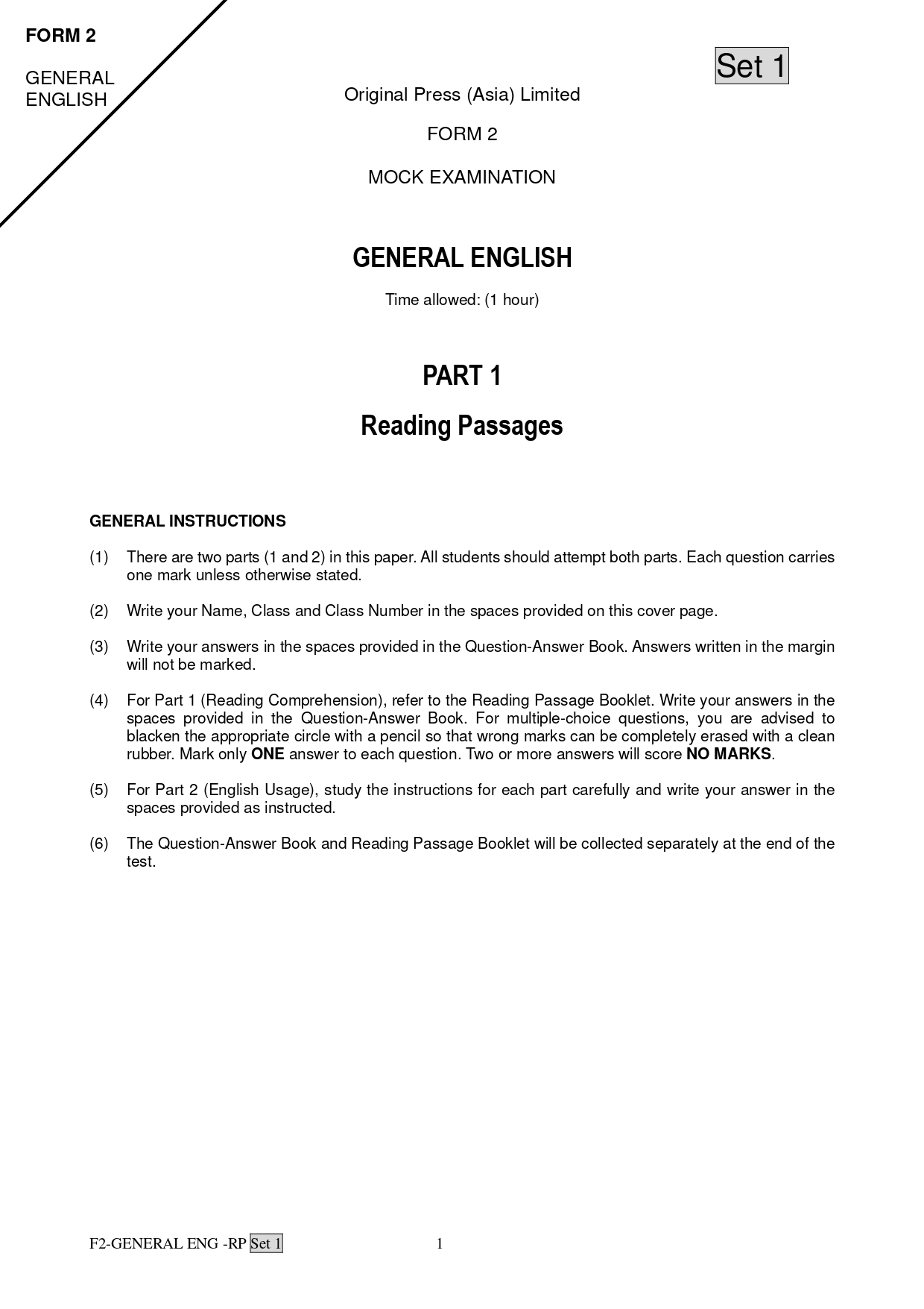 * Includes proofreading and a range of vocabulary commonly encountered in Form 2 English examinations