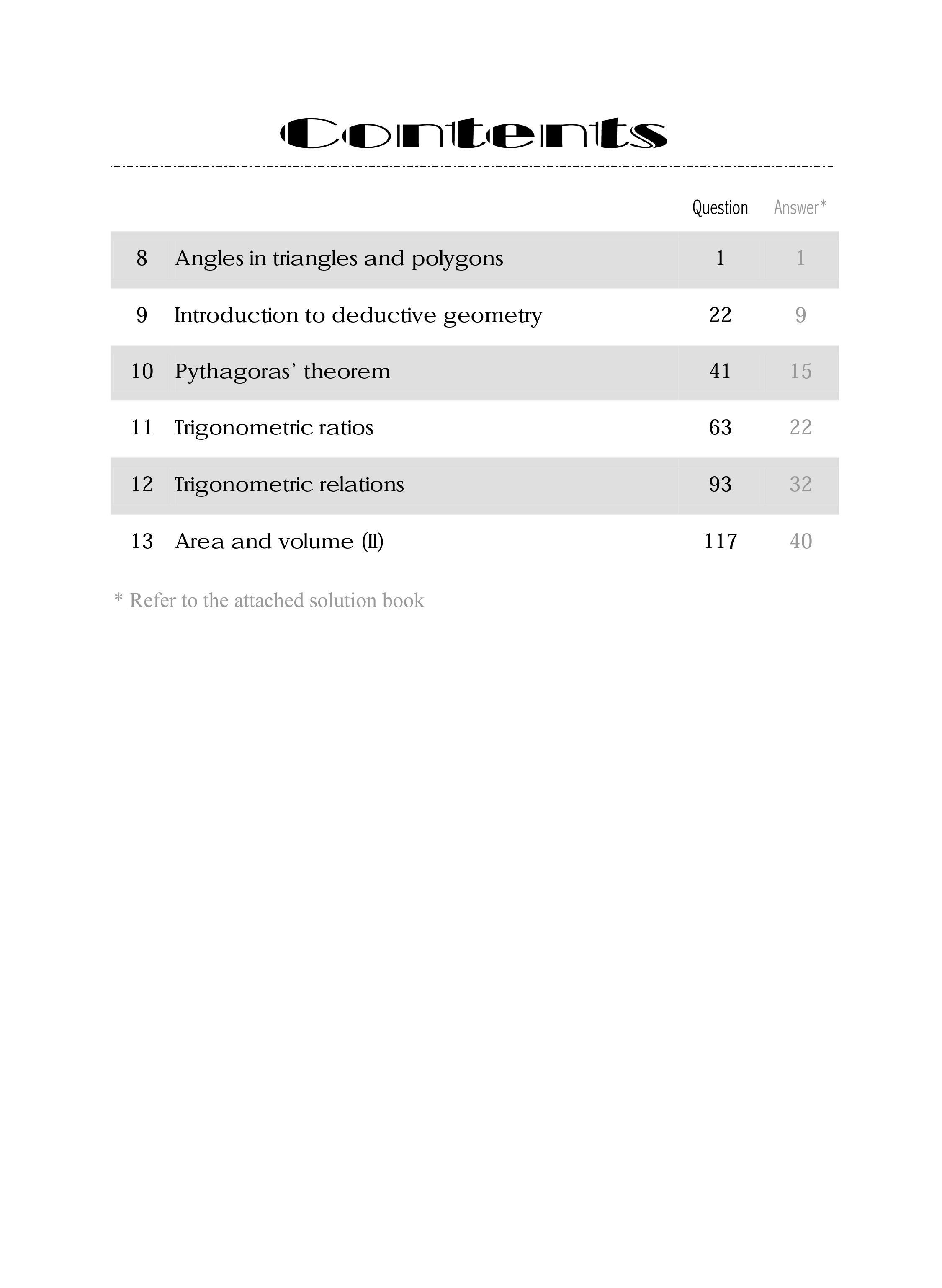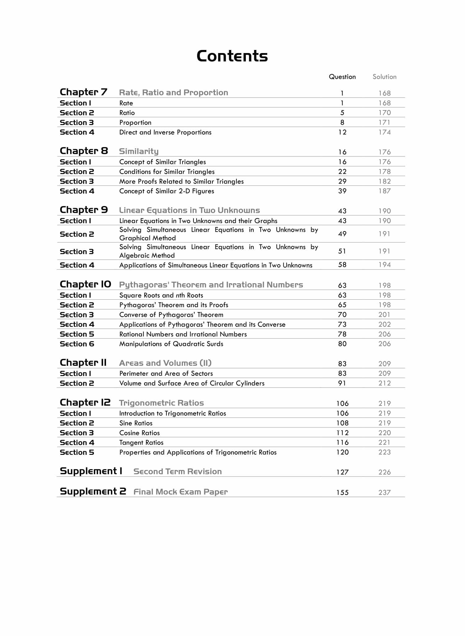 With full coverage of the new junior secondary Mathematics curriculum, this series serves as a useful tool, giving students a deep understanding of the subject and helping them to achieve excellent results in tests and examinations.