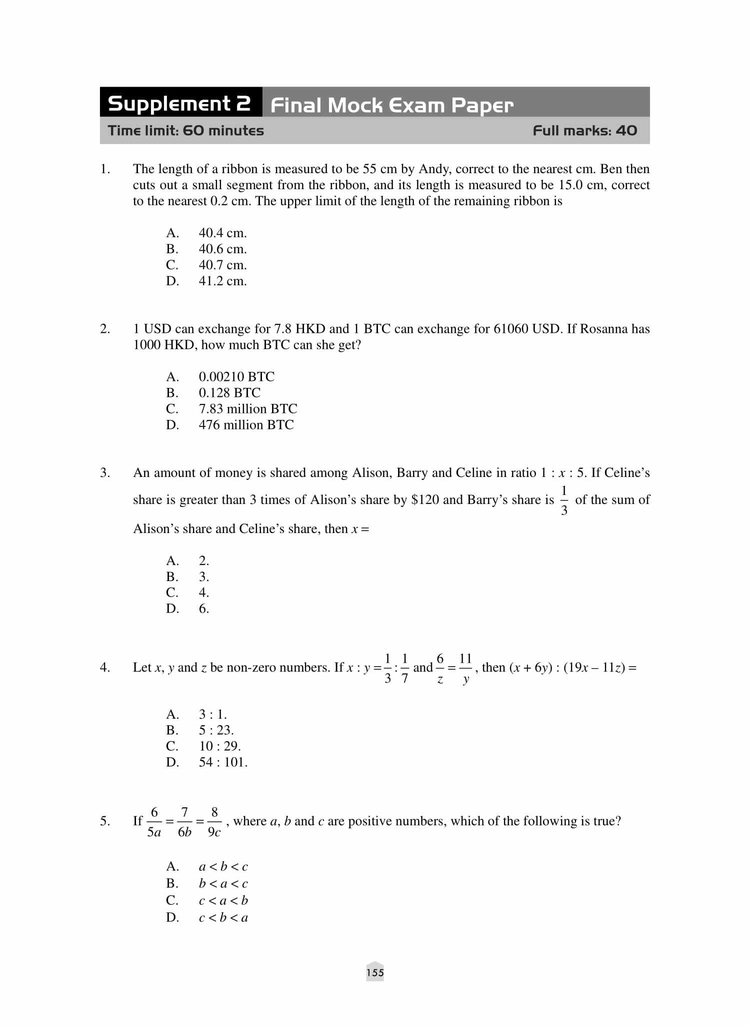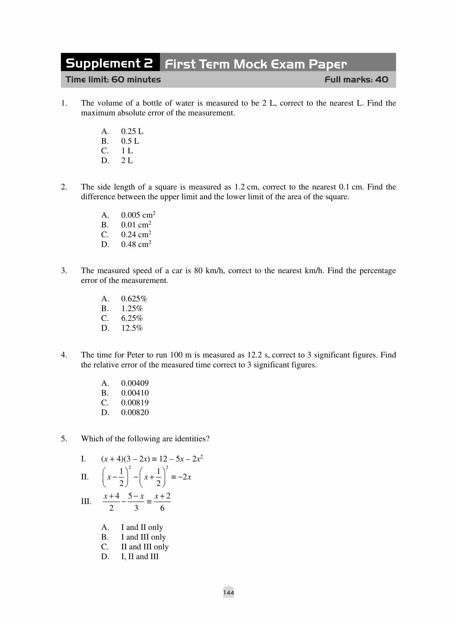 - 可涉及不同的章節及課題,與試卷中的題目相似