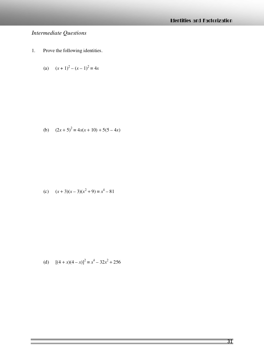 - The Intermediate Section comprises questions which involve more steps or more complicated calculations, requiring students to put in more effort.