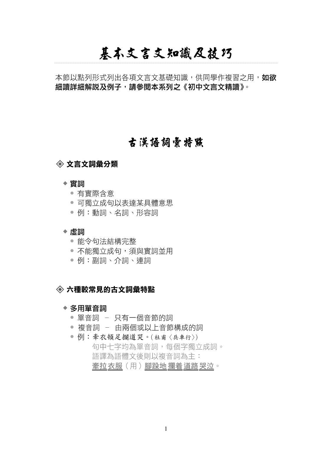 - 有助豐富文言詞彙,了解語法知識