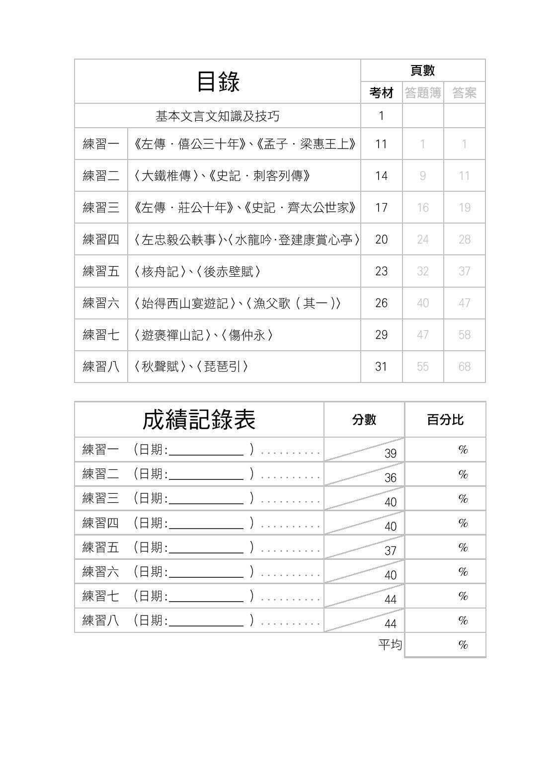 練習內頁:
