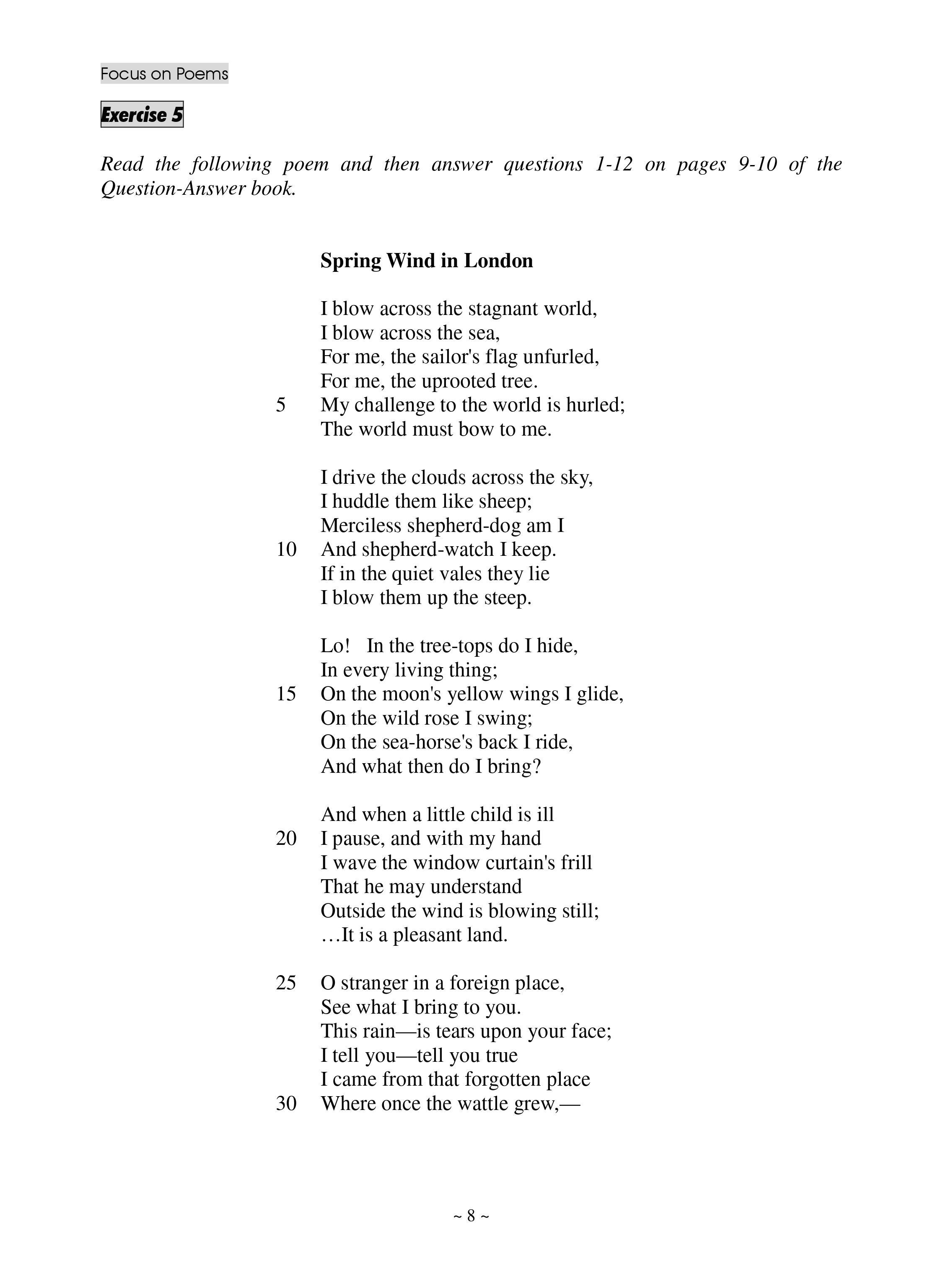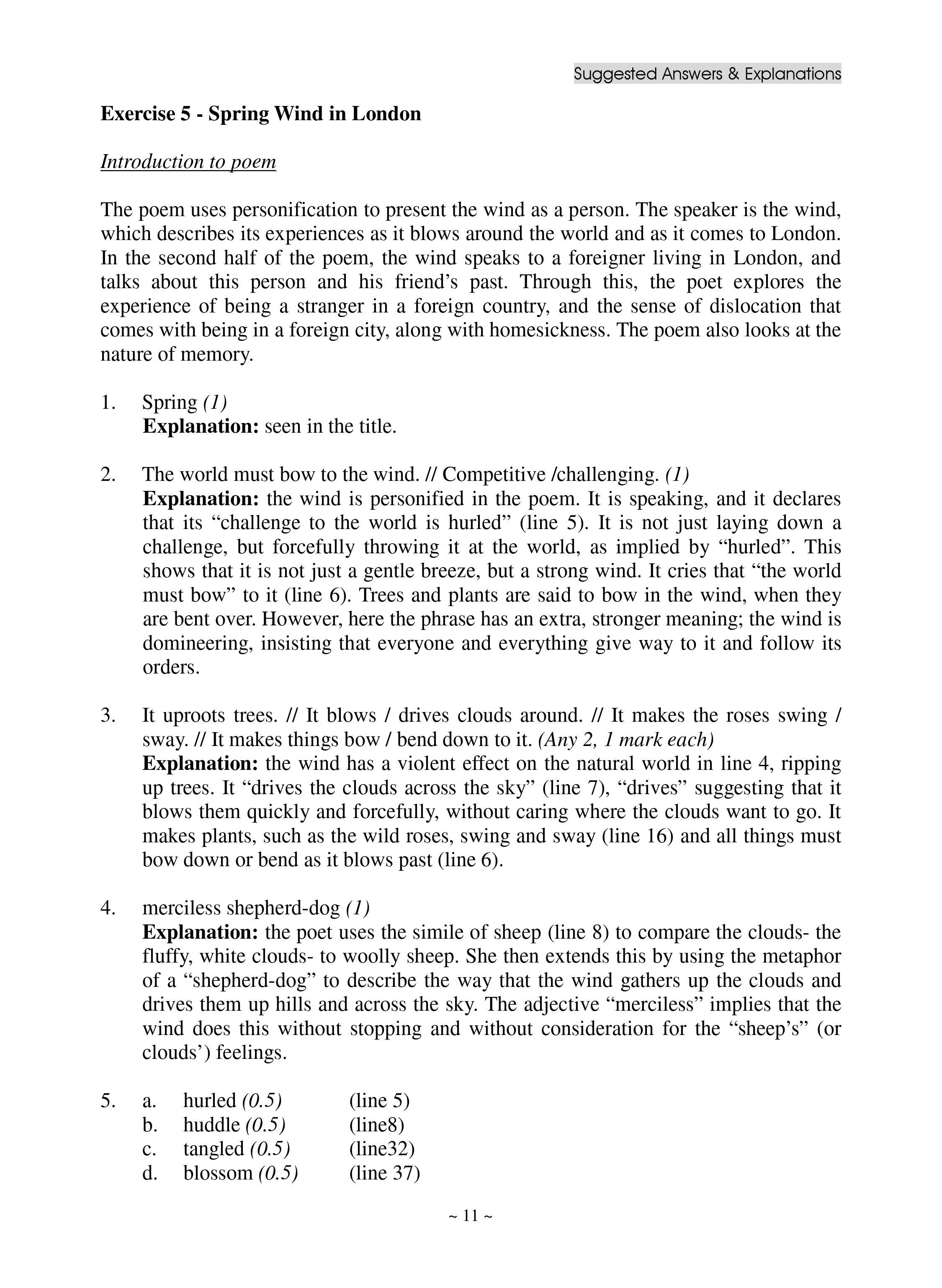 - 此練習為應考文憑試英國語文科的學生編寫,旨在加深同學對英詩的理解,使其可更有自信地應付文憑試中的英詩考題。