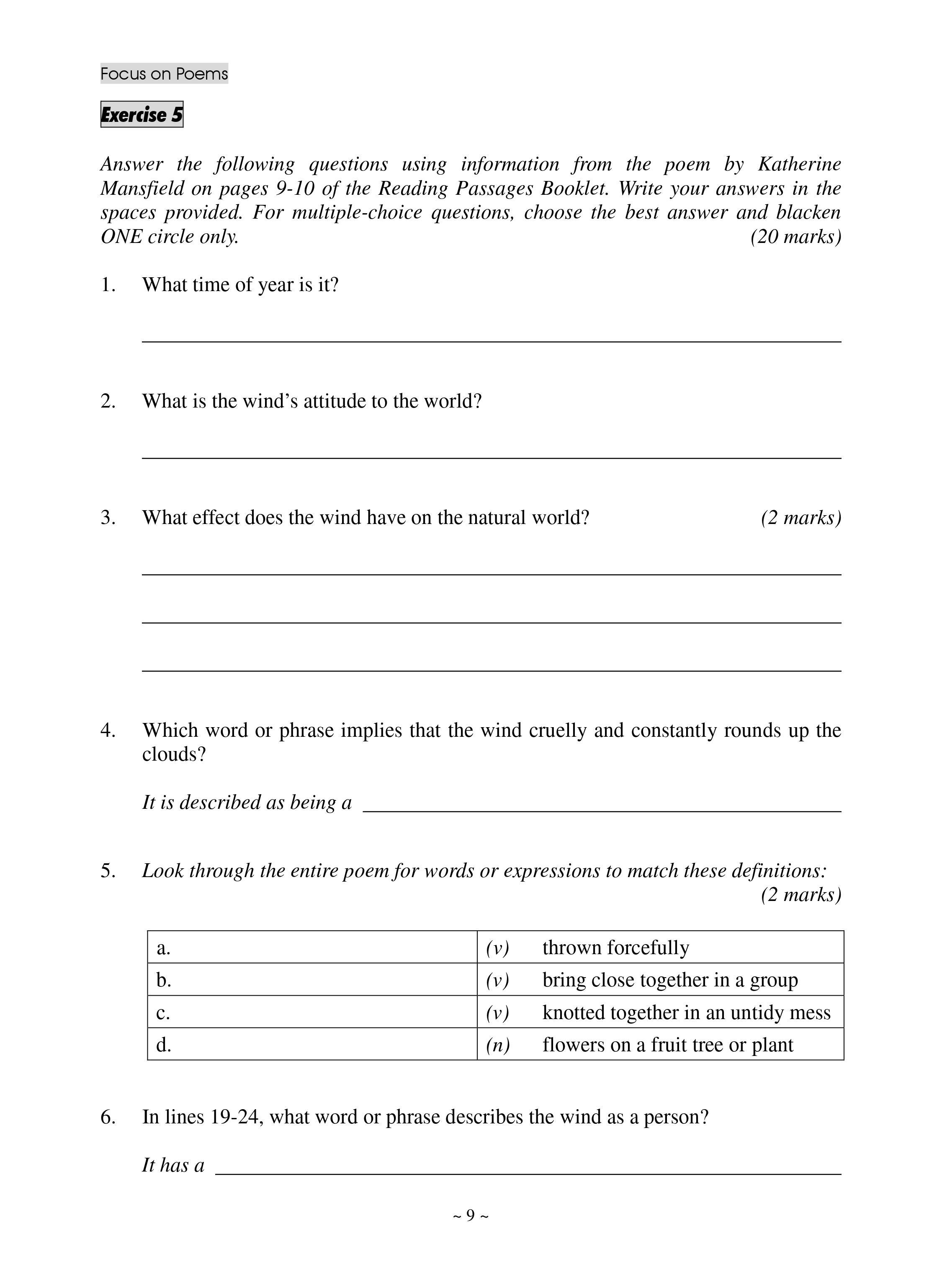 - In this book are 12 more challenging exercises of practice questions based on the sample paper published by the Hong Kong Examinations and Assessment Authority, to give students experience of the types of exercise that they will encounter in the exam. Answers to all questions are also provided, along with explanations to help students understand the poem and to encourage them to think more deeply about the poem.