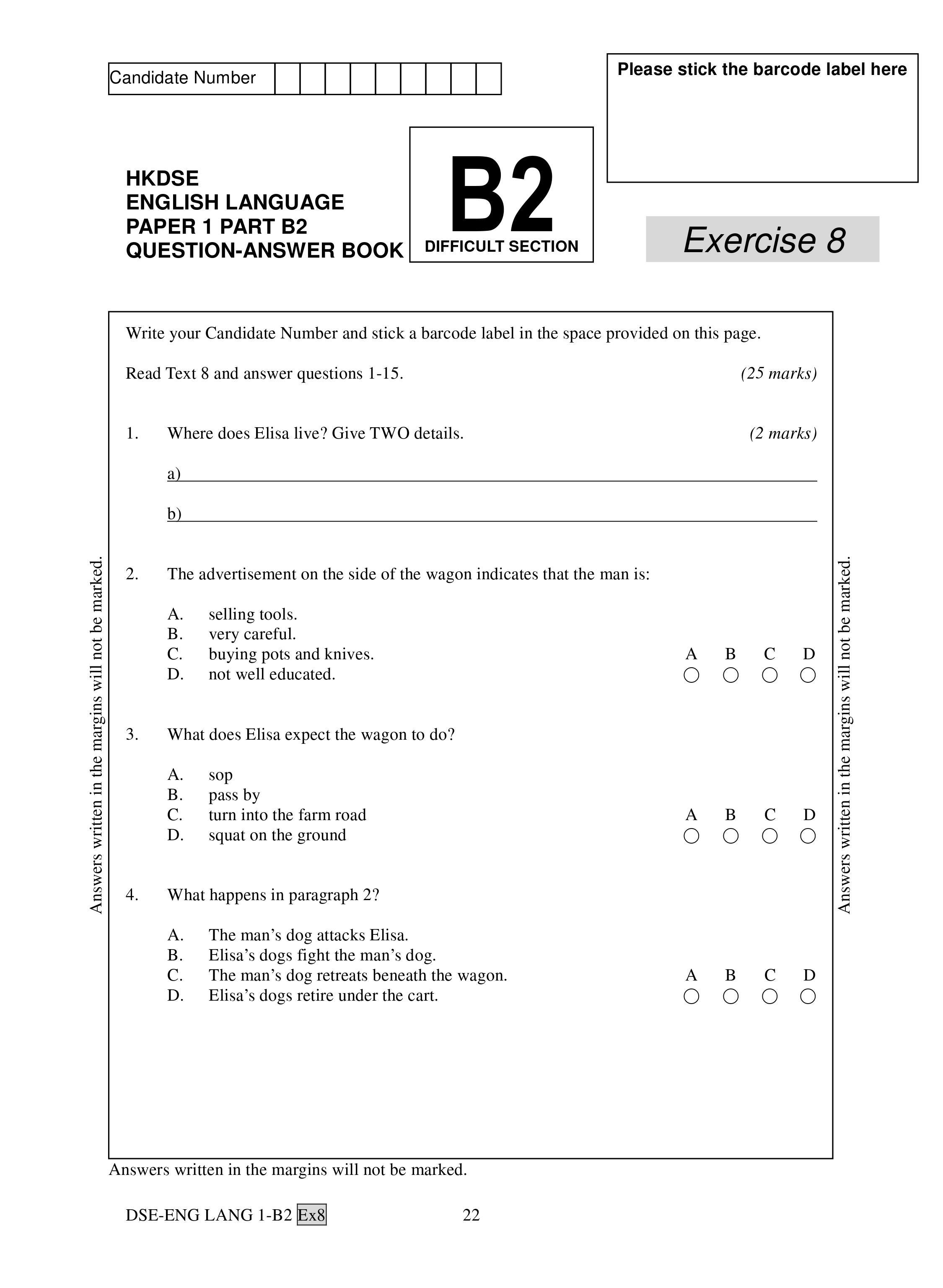 - In this book are practice questions based on the practice paper published by the Hong Kong Examinations and Assessment Authority, to give students experience of the types of exercises that they will encounter in the exam. Answers to all questions are also provided, along with explanations to help students understand the passage and some of the key literary techniques that shape the text's meaning. Advanced vocabulary from the passages is also listed so that students can re-read the texts, checking that they understand these words and phrases in context.