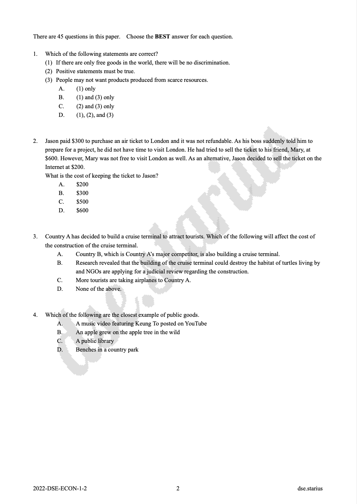 Best 7 45分考生製作 Econ Mock Set 1 Paper 1 (with Marking Scheme and Full Explanation)