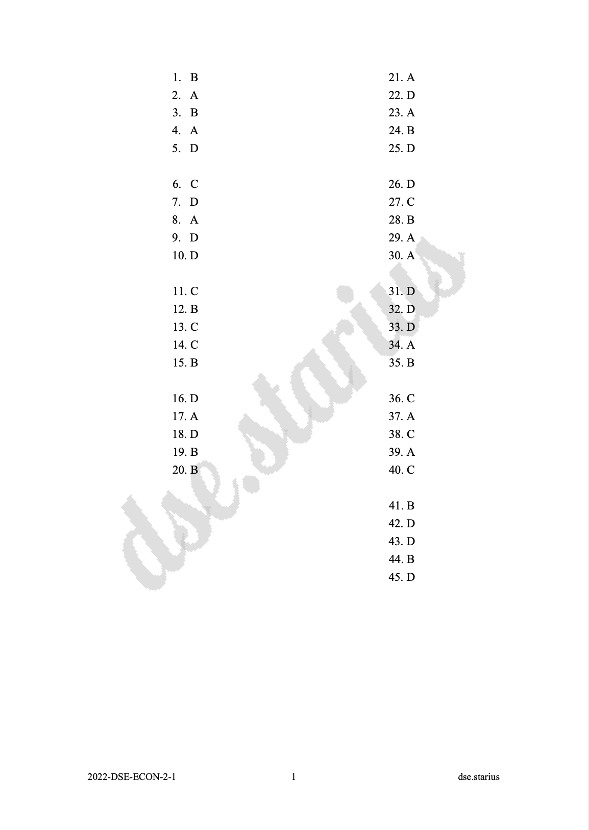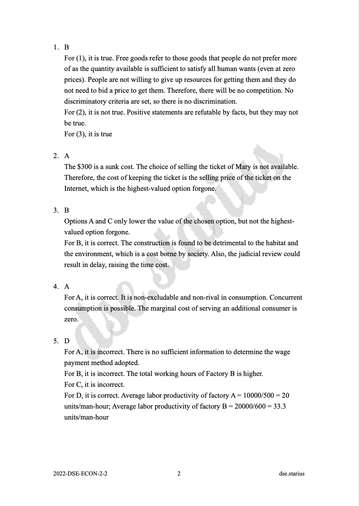 [Best 7 45分考生製作 Econ Mock Set 1 Paper 1 (with Marking Scheme and Full Explanation)]