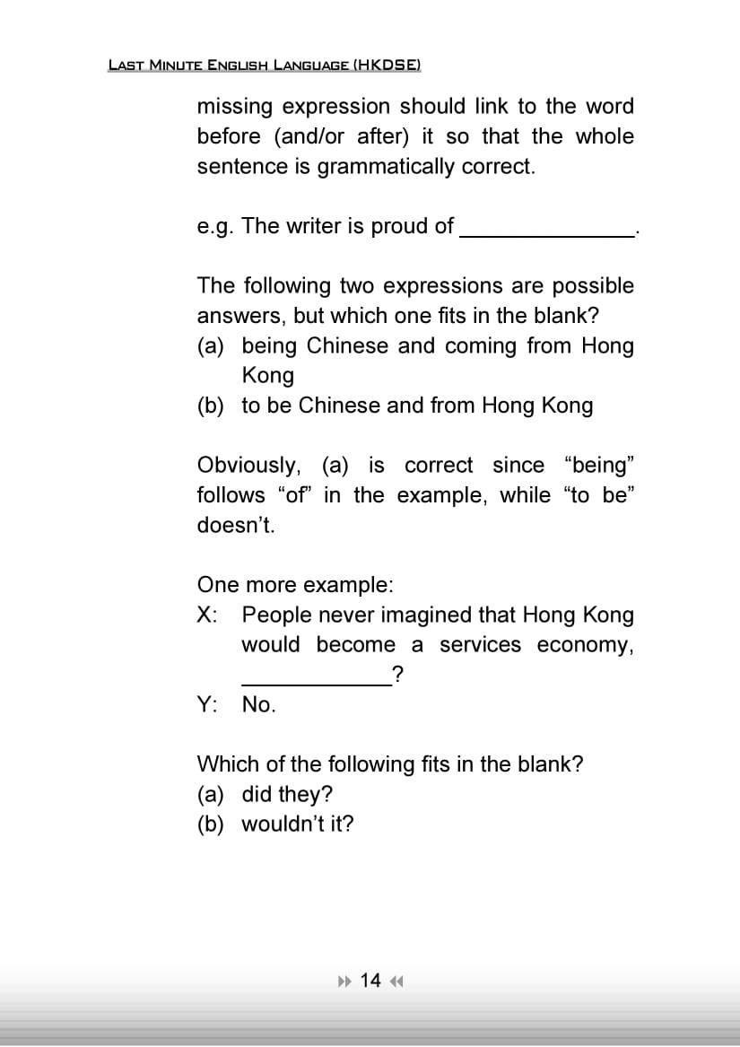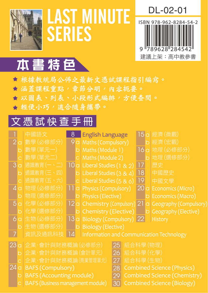 LAST MINUTE ENGLISH LANGUAGE HKDSE gives both teachers and students a comprehensive insight into the crux of the new English Language syllabus. As the name 'LAST MINUTE' implies, it doesn't take readers a long time to get a better understanding of what the new syllabus is about.