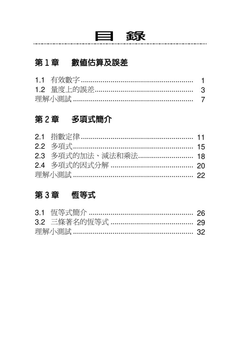 - 一套六冊,內容按初中各年級之課程編排
