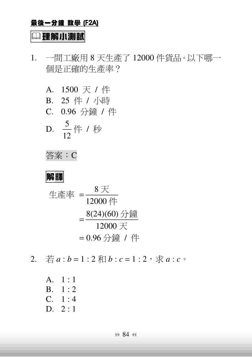 最後一分鐘 數學 F2A(中文版)(Joint Us)