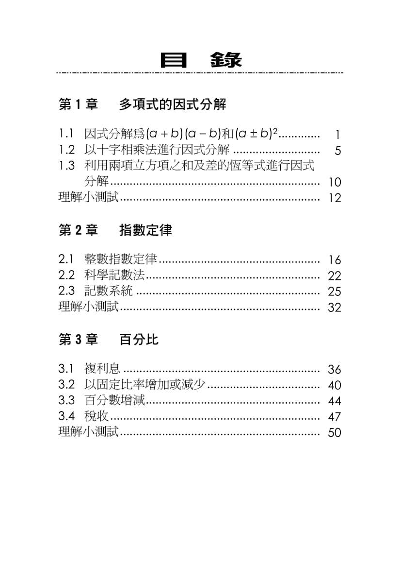 - 一套六冊,內容按初中各年級之課程編排