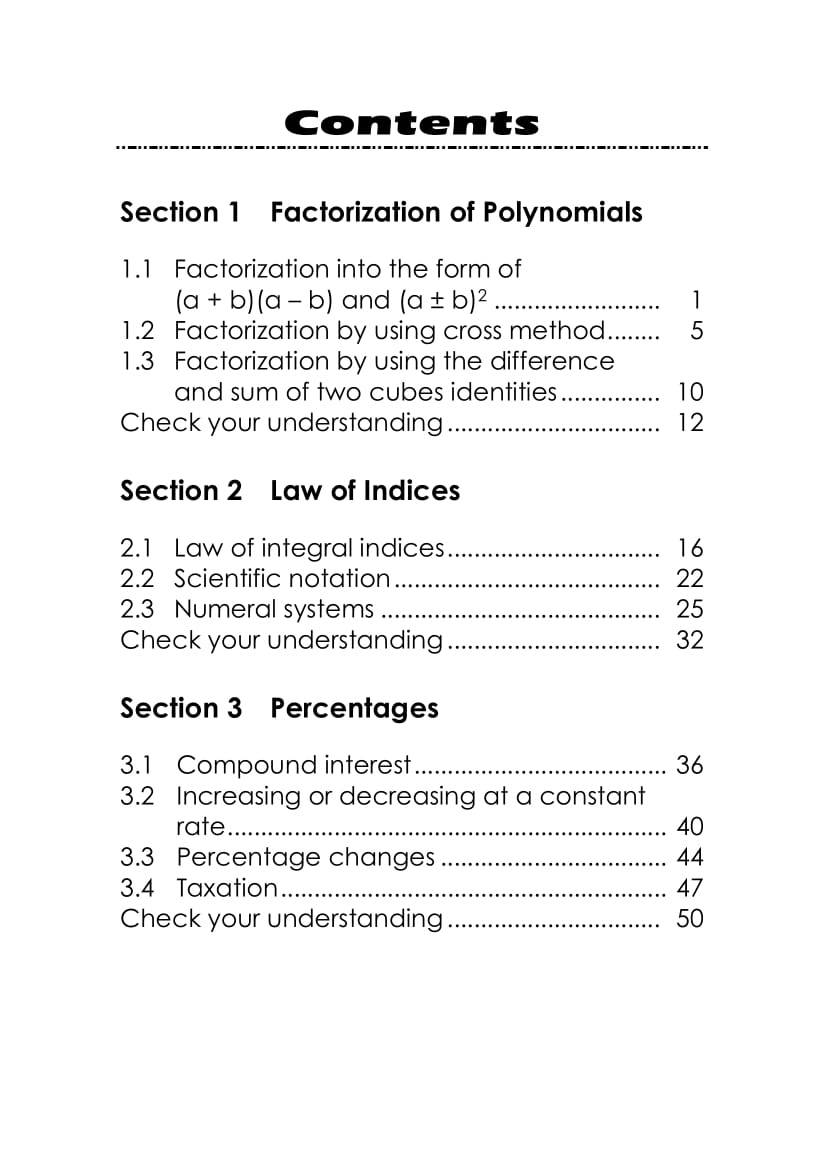- Consists of 6 booklets, each organised systematically according to the latest CDC Mathematics Curriculum for junior secondary students