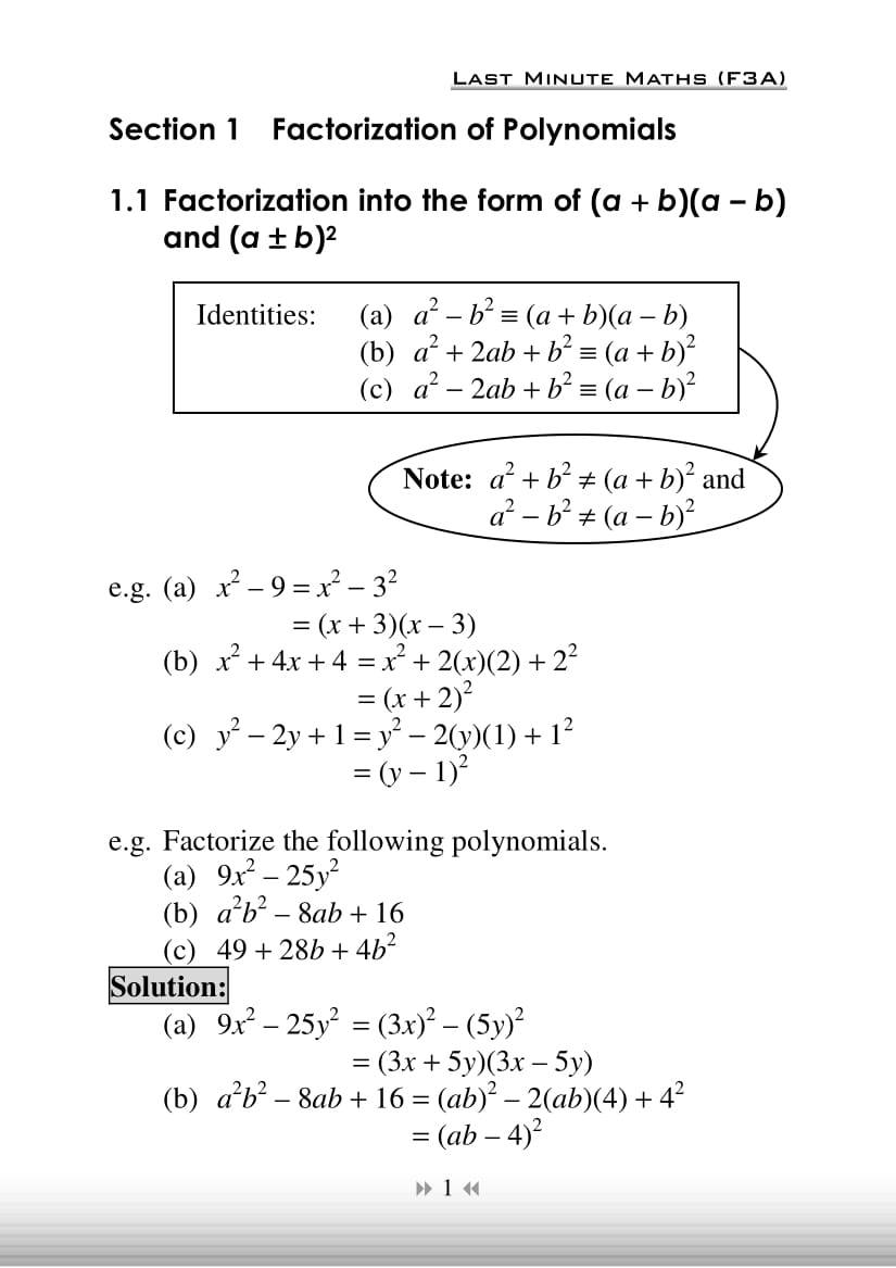 About the Last Minute Mathematics (F1-F3) series :