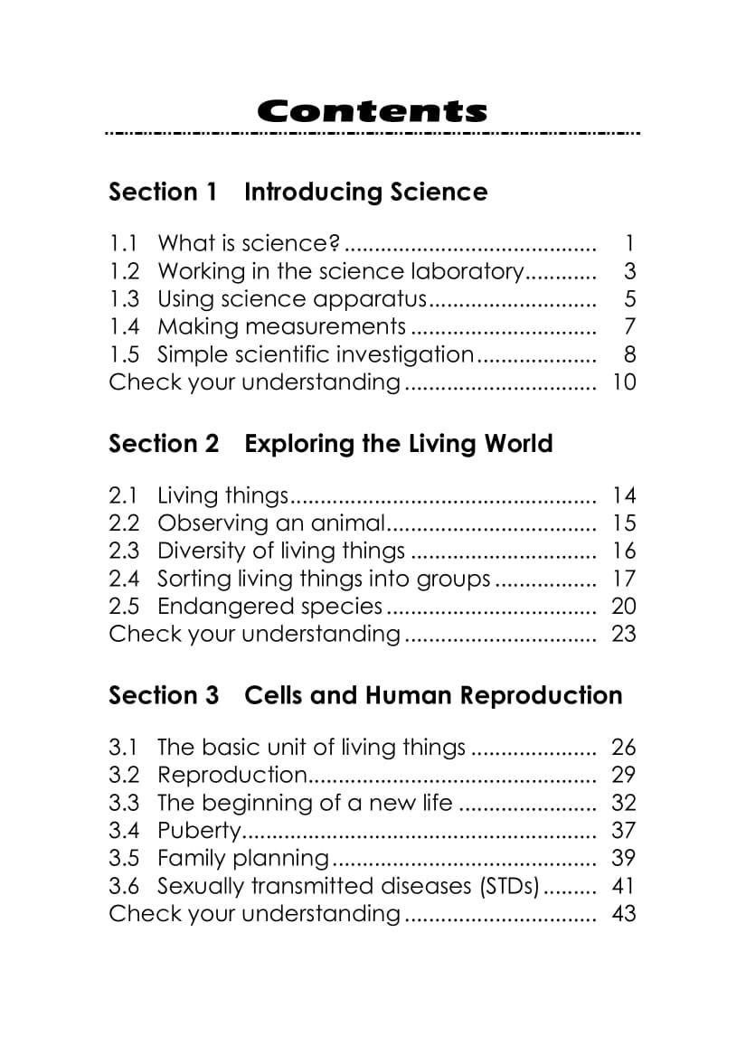 - Consists of 3 booklets, each organised systematically according to the latest CDC Science Curriculum for junior secondary students