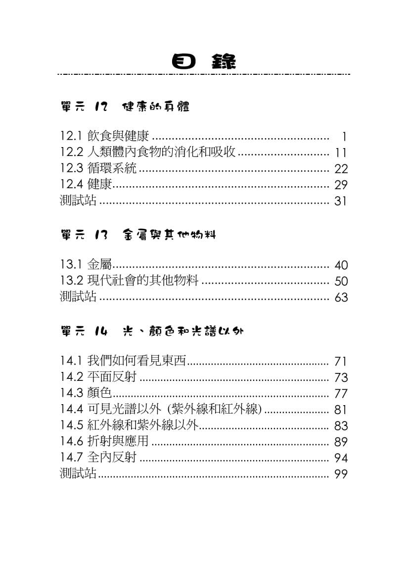 - 一套三冊,內容按初中各年級之課程編排