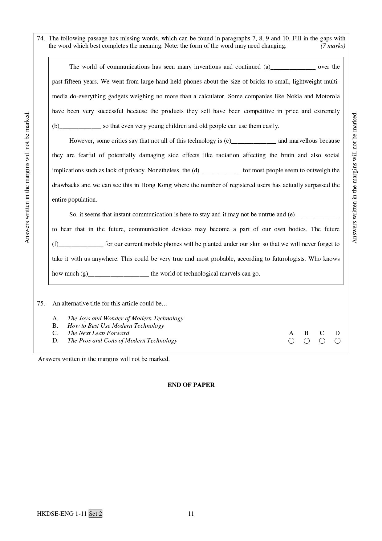 • All reading passages reflect local and international situations. (閱讀文章取材本地和國際議題)