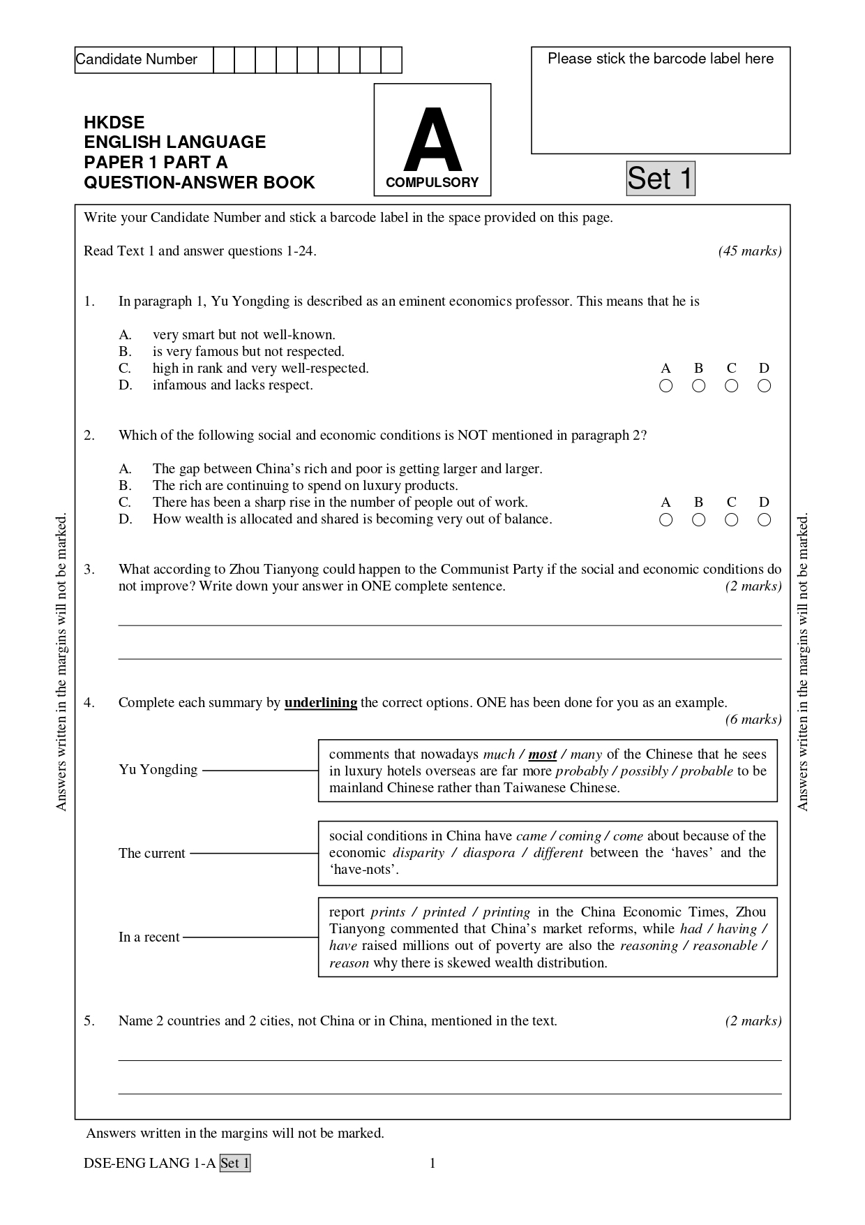• All reading passages reflect local and international situations. (閱讀文章取材本地和國際議題)