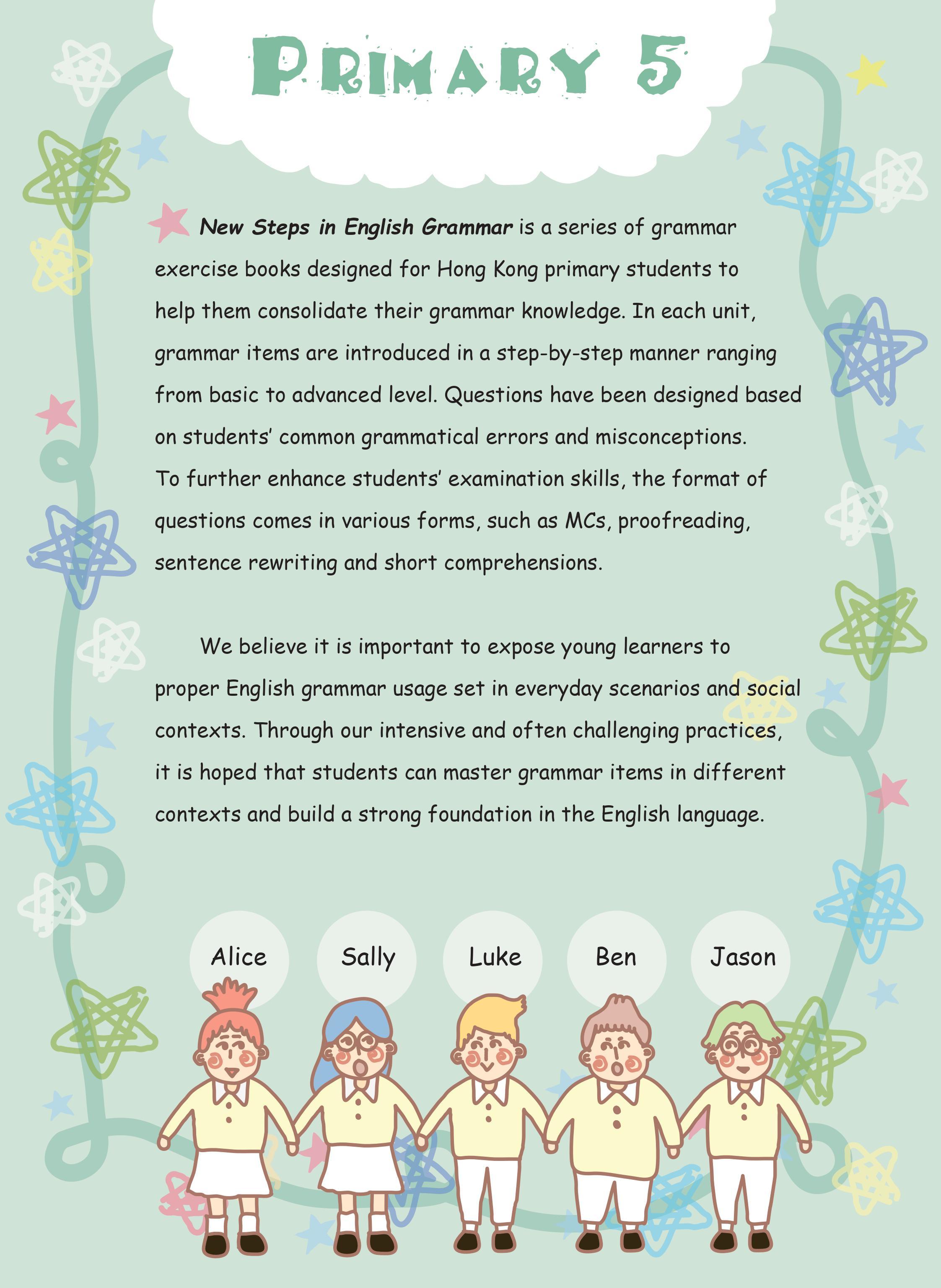 - 精心設計練習問題,除了幫助學生改善語法和增加詞彙,特意選取的主題更能擴闊他們的視野