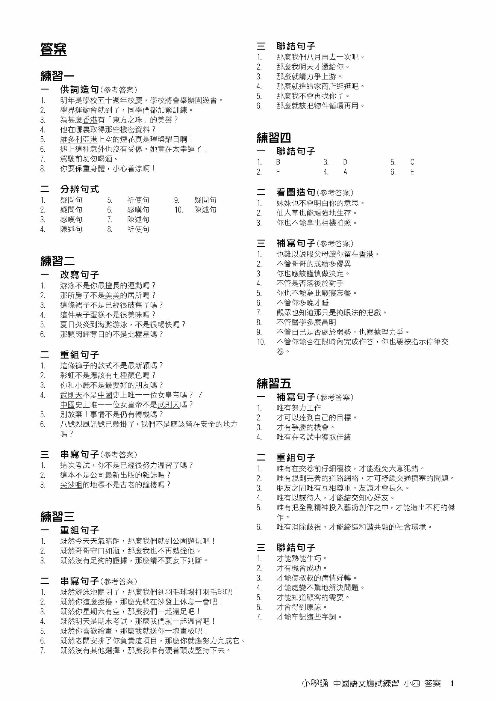 本系列的練習均附有答案,短答題、多項選擇題等各項題型均附詳盡解釋,並指出學生應該如何找出內容重點。此外,本練習的答案亦清楚標示分數分配,使學生能夠更清楚考核重點,掌握答題技巧,更有能力應付校內、校外各種考試。