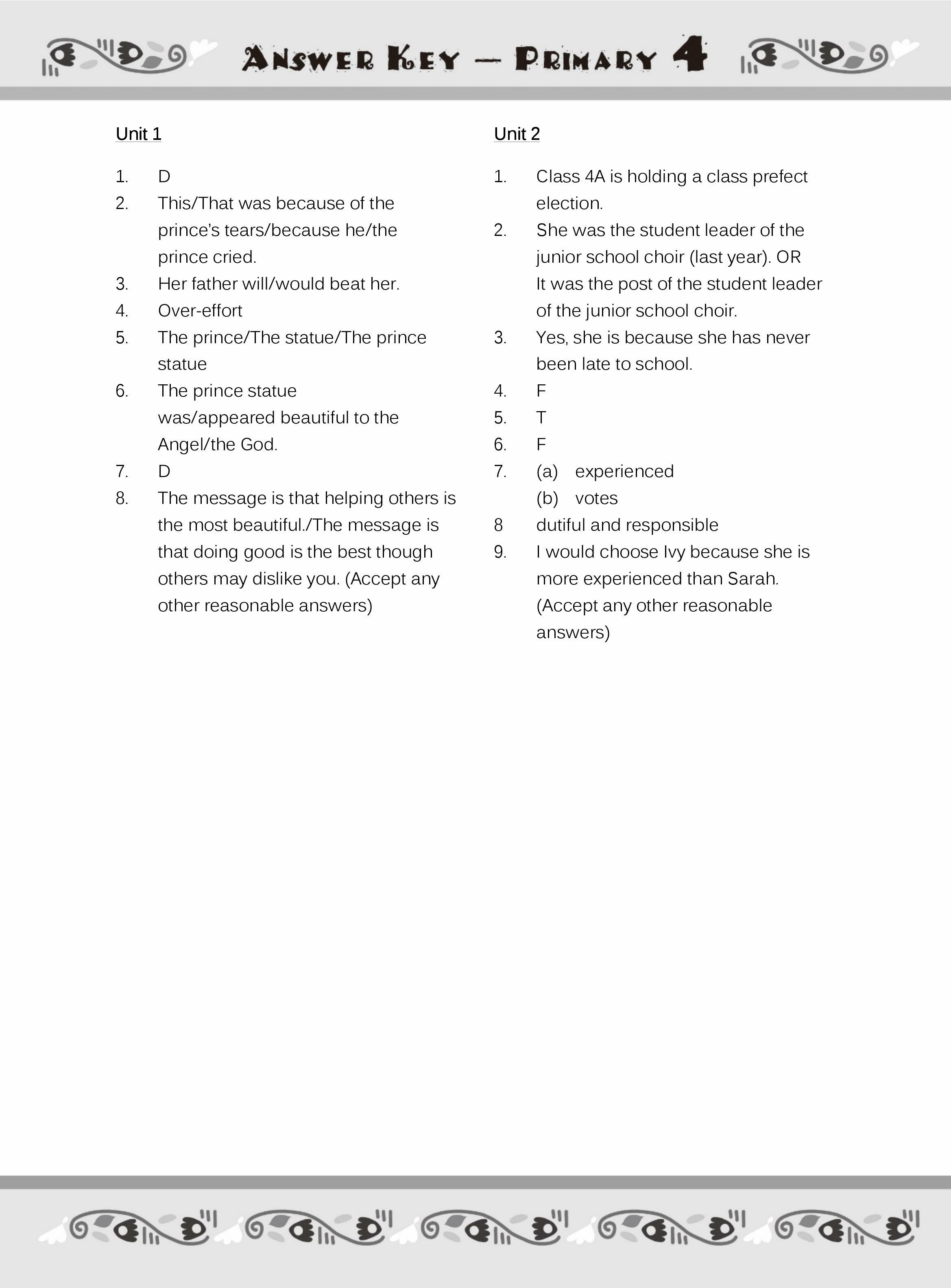 - Suggested answers for reference